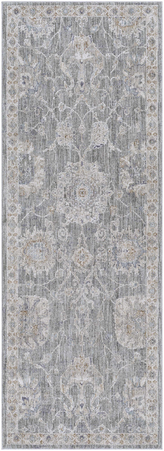 Introducing the Monterey Gray Persian Area Rug, a perfect blend of updated traditional style with a touch of modern charm. This rug is meticulously machine-woven in Turkey from a balanced mix of polypropylene and polyester, offering an impressive medium pile that stands up to high-traffic areas with grace and longevity. It features a stylish fringe that adds an extra layer of elegance to your space. For optimal use, we recommend pairing this rug with a pad to prevent shifting or sliding. And when it comes to care? Simply spot clean this stunning piece with mild detergent to keep it looking as fabulous as the day you laid it down. The Monterey Gray Persian Rug rug is not just another decor element; it's an expression of refined taste and appreciation for tradition reimagined.