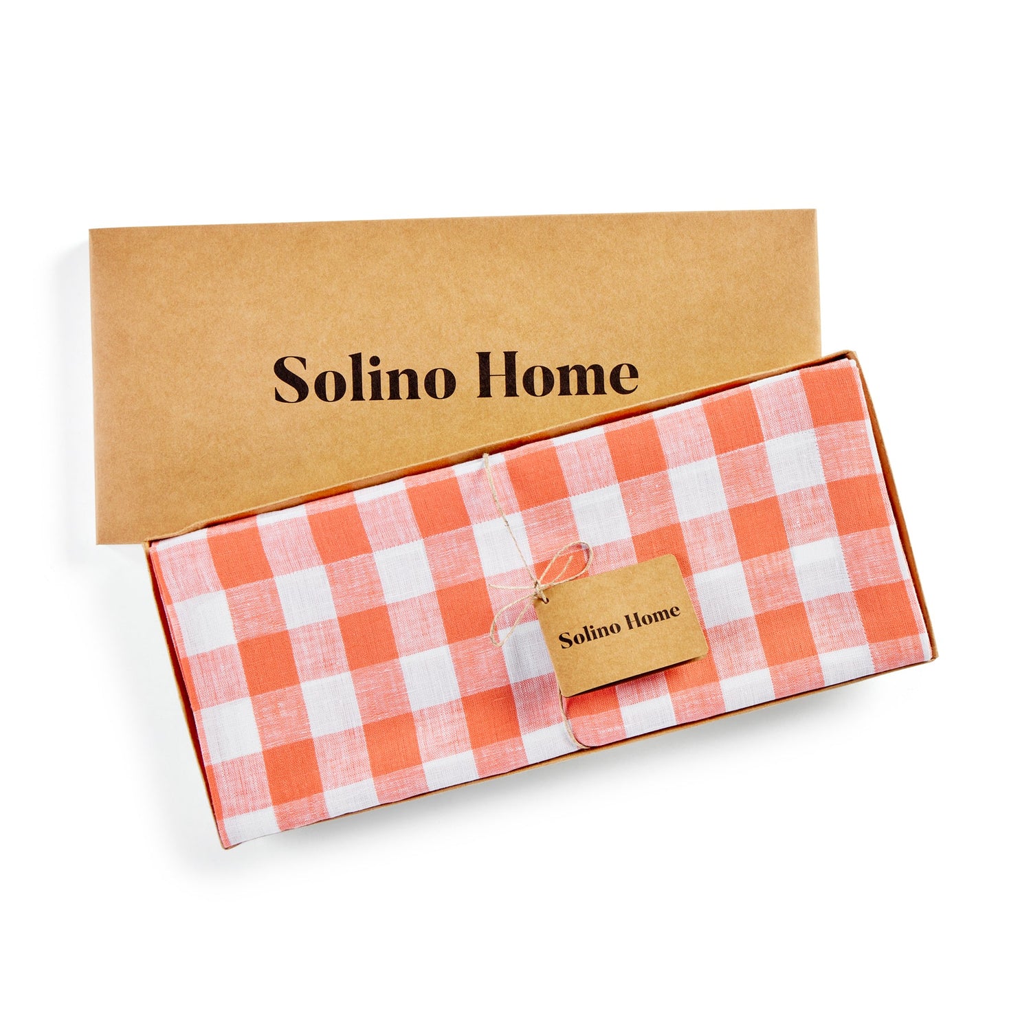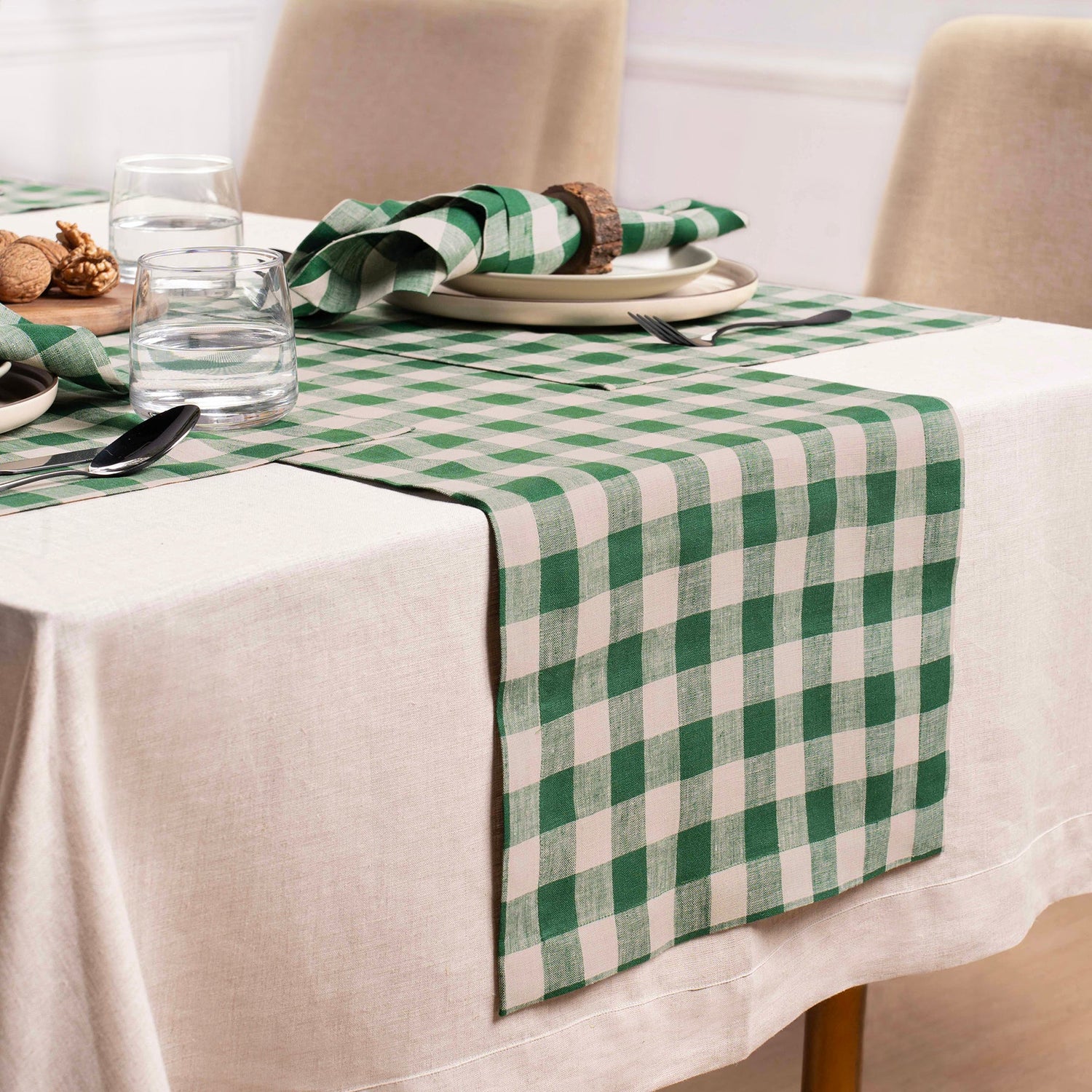 A fresh take on a classic look, our Morgan check collection brings warm and rustic charm to the table. Hand-crafted of 100% pure linen by our skilled artisans, the collection includes a tablecloth, placemats, table runner, and coordinating napkins in a classic palette of colors.