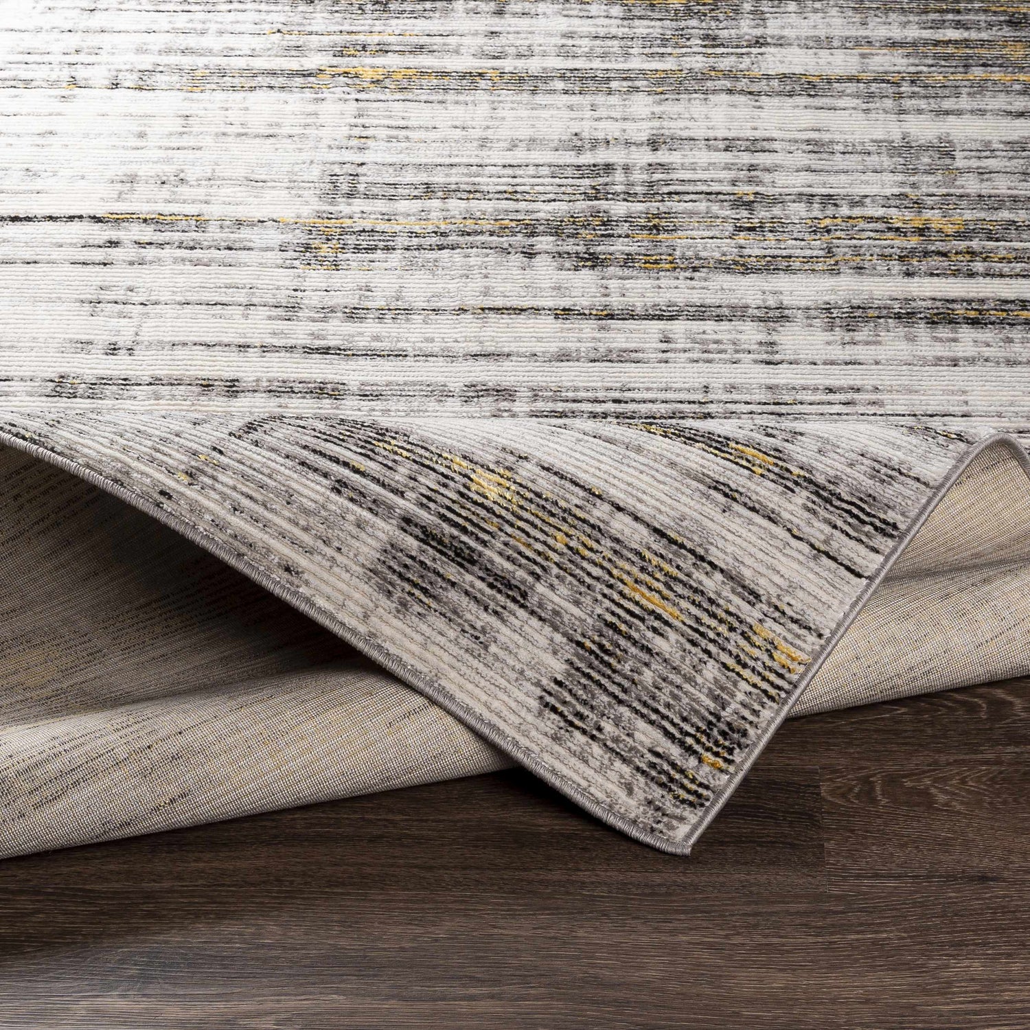 Moy Gray&Yellow Striped Area Rug - Clearance