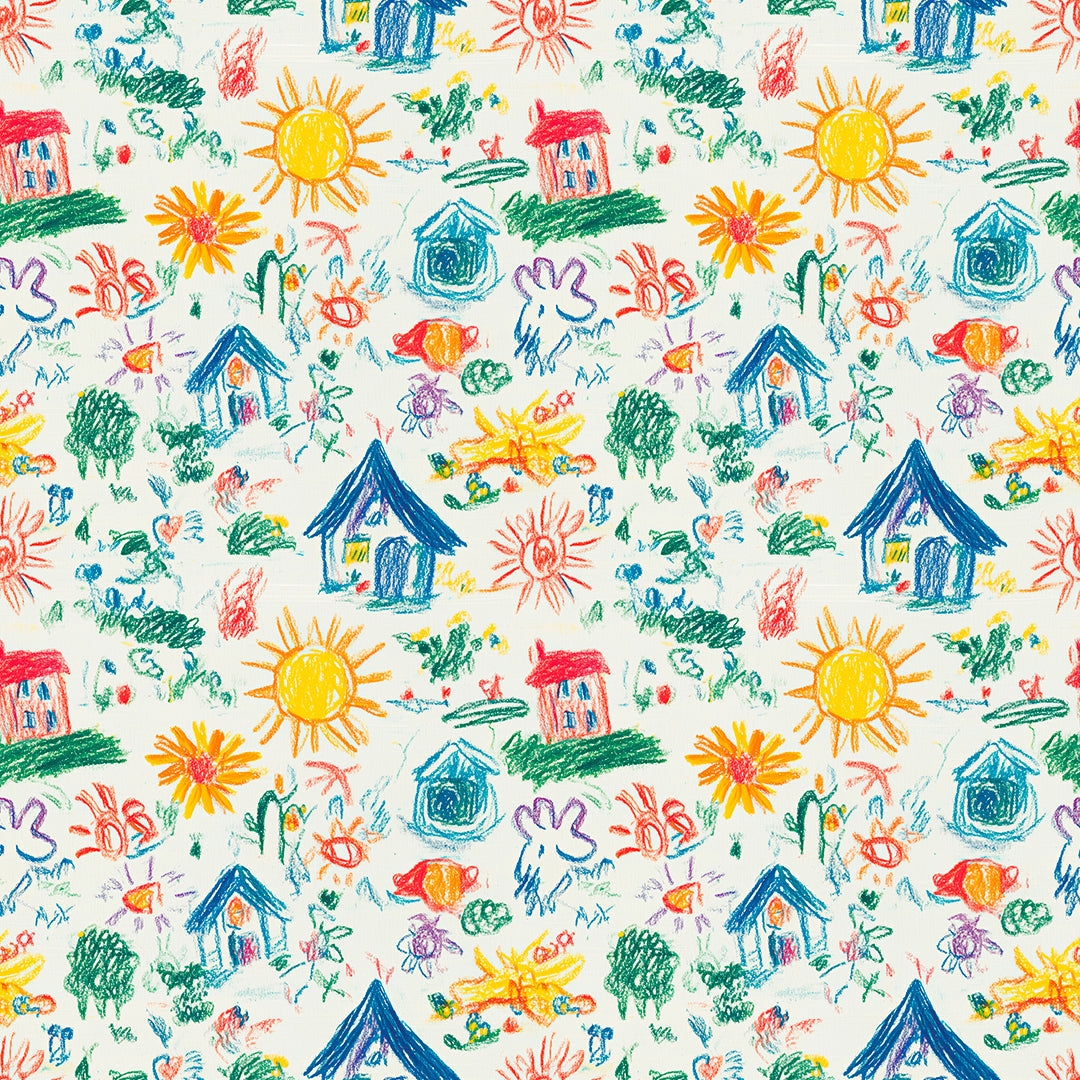 Capture the joyful innocence of a child's first artwork with this whimsical wallpaper. The charming, crayon-style drawings of houses, suns, and flowers evoke a sense of nostalgia and uninhibited fun. Its vibrant, multi-colored palette on a cream background is perfect for inspiring imagination in a nursery, playroom, or creative space.