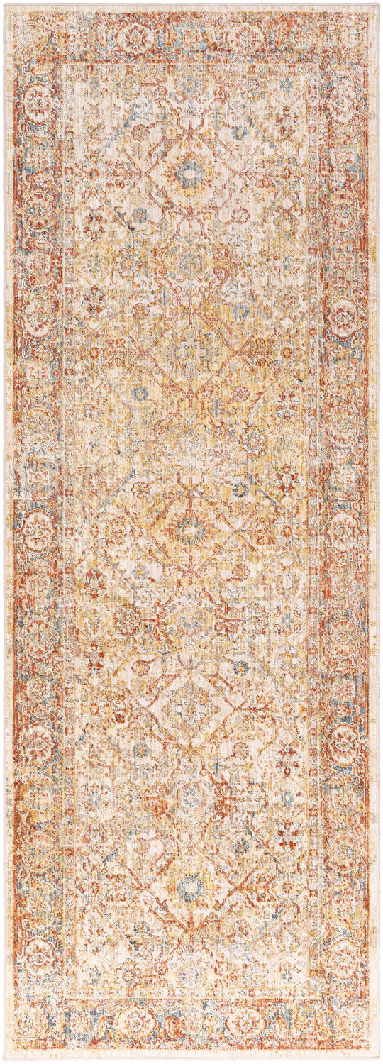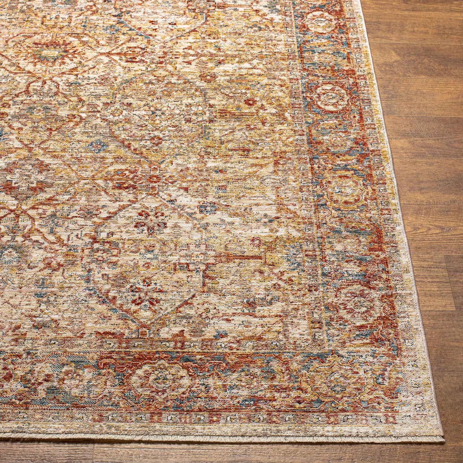 Introducing the Myrtletown Area Rug, a stunning piece that perfectly marries traditional design with contemporary flair. This Turkish-made treasure is machine woven from durable polyester, making it an excellent choice for high traffic areas in your home. The updated traditional style offers a timeless aesthetic, while the charming fringe adds an extra touch of sophistication. Despite its low pile construction, we recommend using it with a rug pad for added comfort and longevity. Maintaining this beautiful rug is effortless; simply spot clean it with mild detergent as needed. With the Myrtletown Area Rug, you're not just getting a rug - you're adding an enchanting piece of decor to your space.