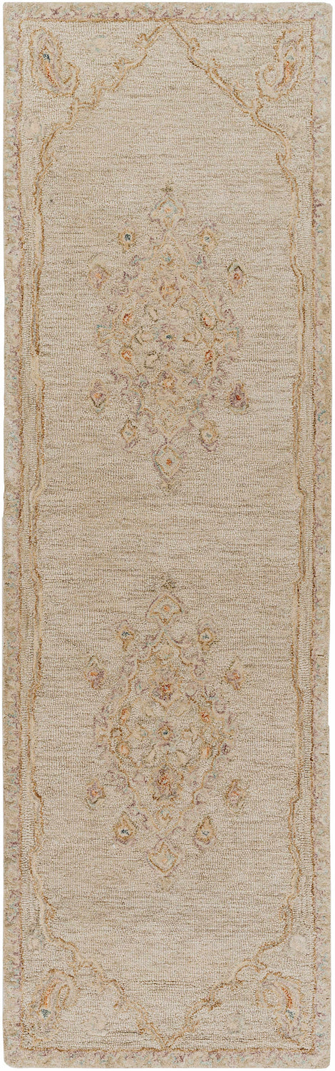 Step into comfort and style with the Naga Area Rug Hand Made Rug, an updated traditional piece that adds a touch of elegance to any room. Hand-tufted in India, this medium pile rug is made entirely of wool for a cozy feel underfoot and easy maintenance. Its sophisticated design will seamlessly blend with your decor and add warmth to your living space. For an optimal experience, we recommend using this rug with a pad underneath. And don't worry about spills or stains - a simple spot clean with mild detergent will keep this rug looking as good as new!