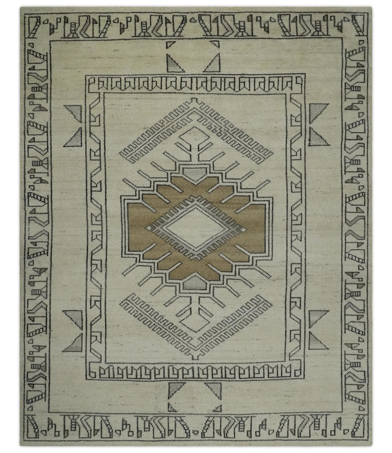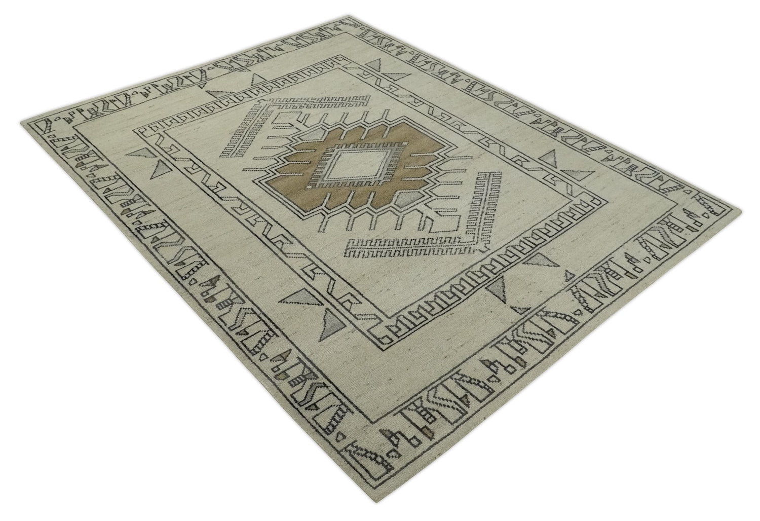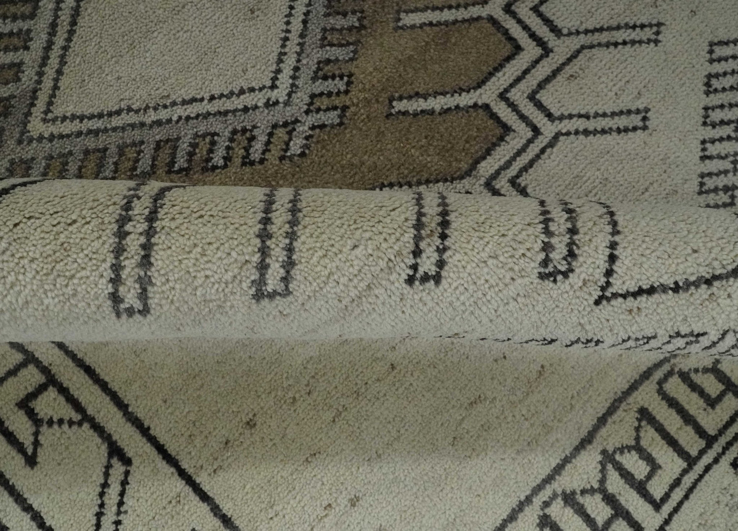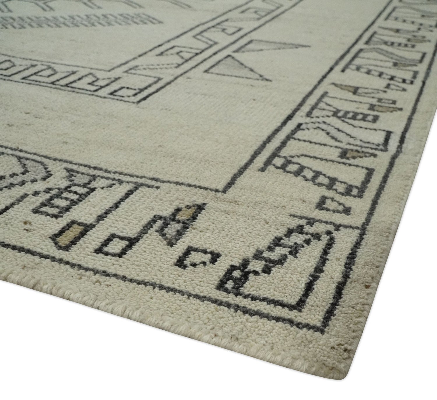 Natural Wool Hand Knotted Ivory, Beige and Black Traditional Heriz Serapi Wool Multi Size wool Area Rug, Kids, Living Room and Bedroom Rug