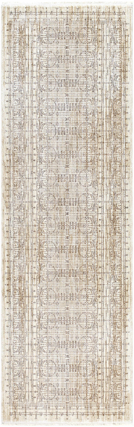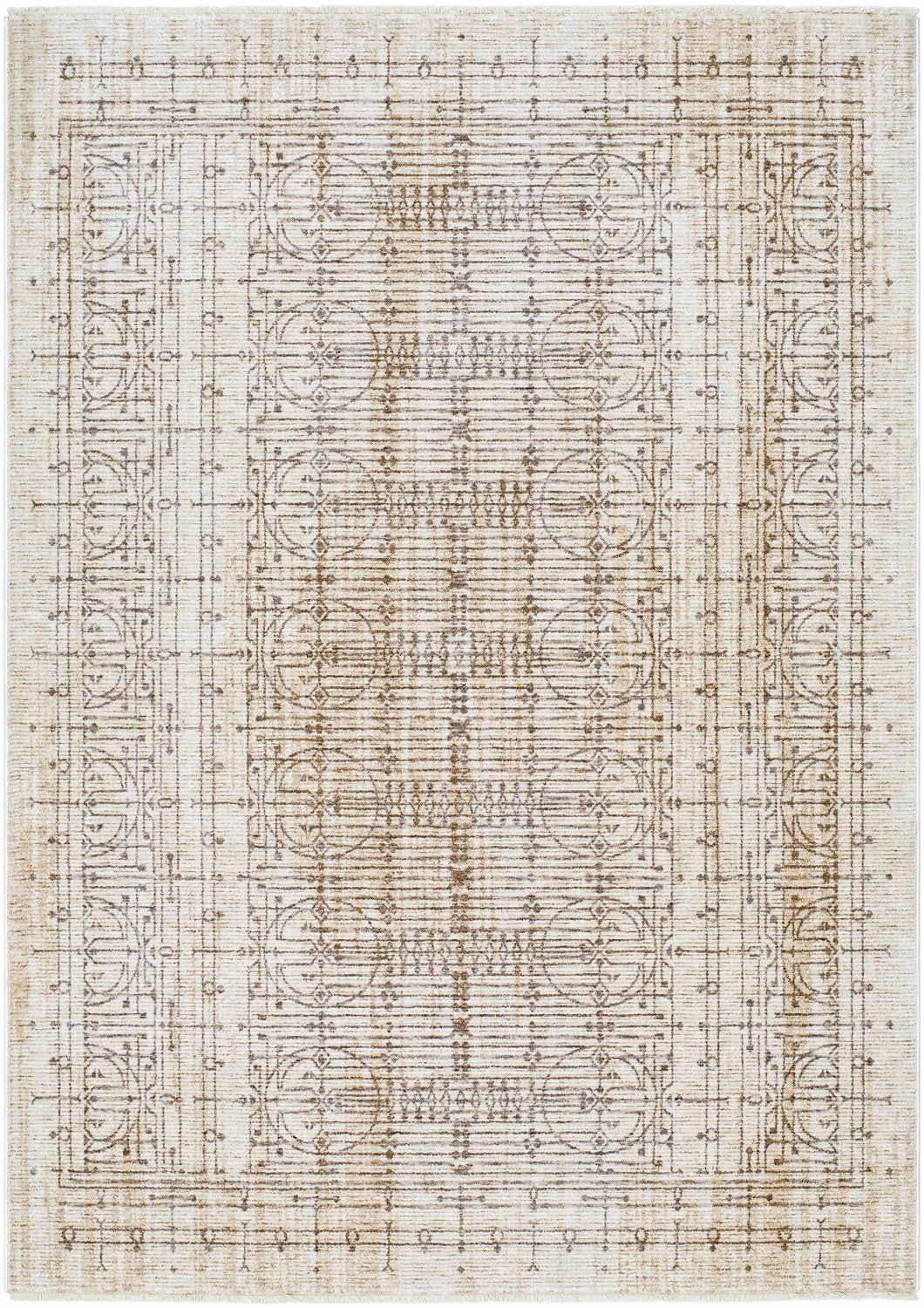 Step into the future with a touch of the past with our Neena Area Rug, an exceptional creation from the collaborative efforts of the Frank Lloyd Wright Foundation and Livabliss. This transitional modern design boasts a tasteful white and tan base interwoven with gray and brown highlights. Made in Turkey, this machine woven area rug is crafted from durable polyester, making it perfect for high traffic areas. A stylish fringe detail graces its edges, adding a playful charm to any space. For an extended lifespan and to prevent slippage, we recommend use with a rug pad. When it's time for a clean-up, simply spot clean with mild detergent to keep your rug looking brand new!