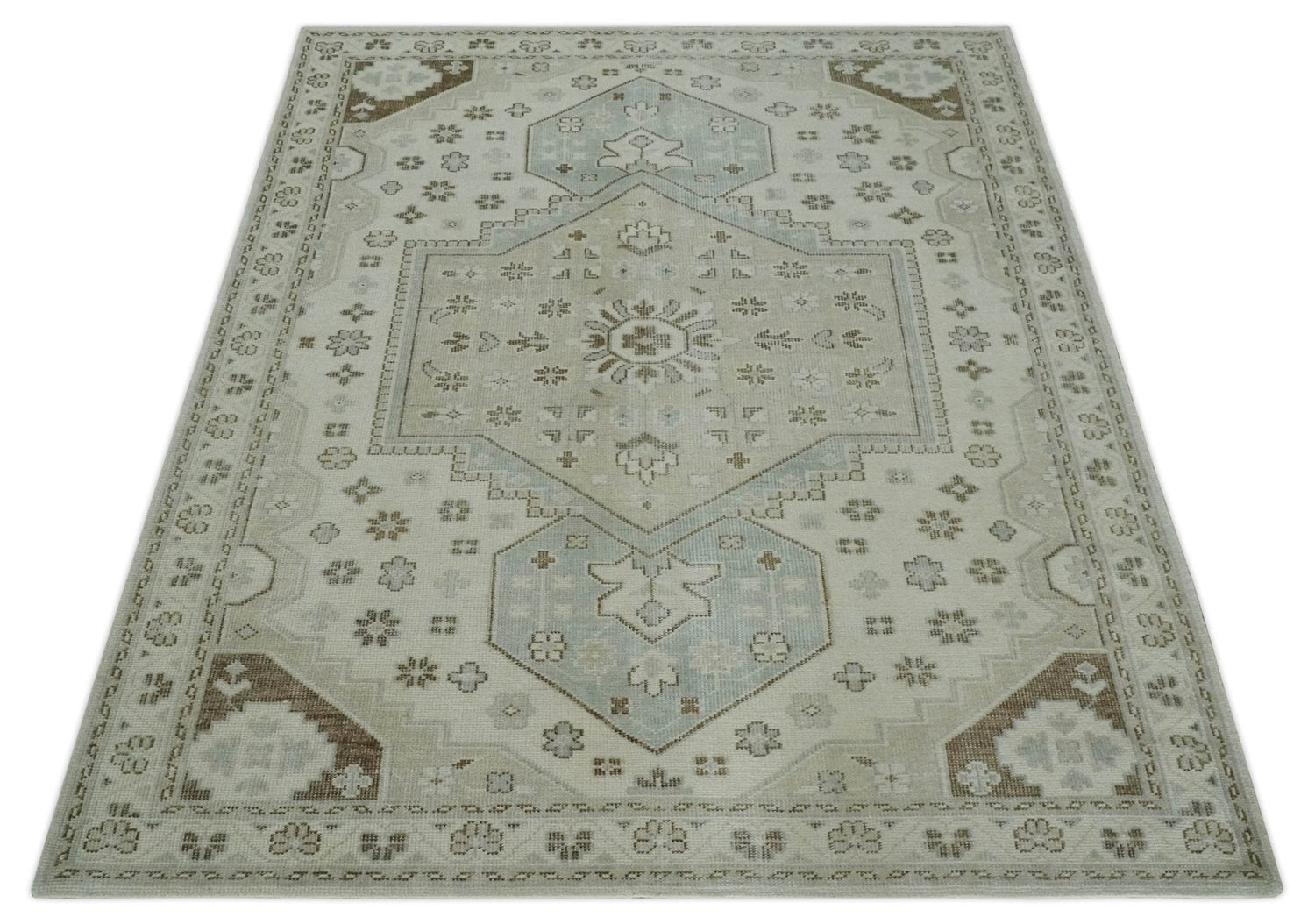 Neutral Ivory, Brown and Gray Hand knotted Traditional Multi Size wool Area Rug