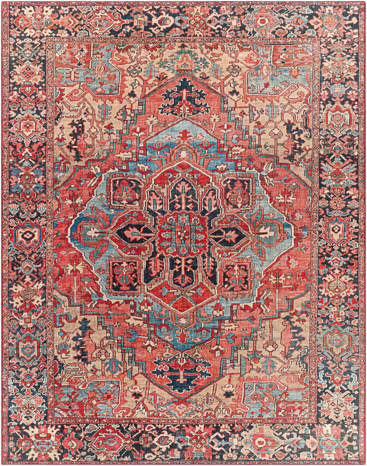 This Neyland Area Rug traditional area rug is the perfect addition to any room in your home. The machine woven construction and Polyester fibers make this rug an ideal choice for high traffic areas, as it is not easily damaged by everyday wear and tear. This no pile rug is easy to care for and maintain; simply spot clean when necessary. Add comfort and style to your space with a rug pad (not included), which will provide extra cushioning underfoot while protecting your floors from scratches or dirt buildup. Whether you're looking for an eye-catching centerpiece or a cozy touch of texture, this beautiful Neyland Area Rug has you covered.