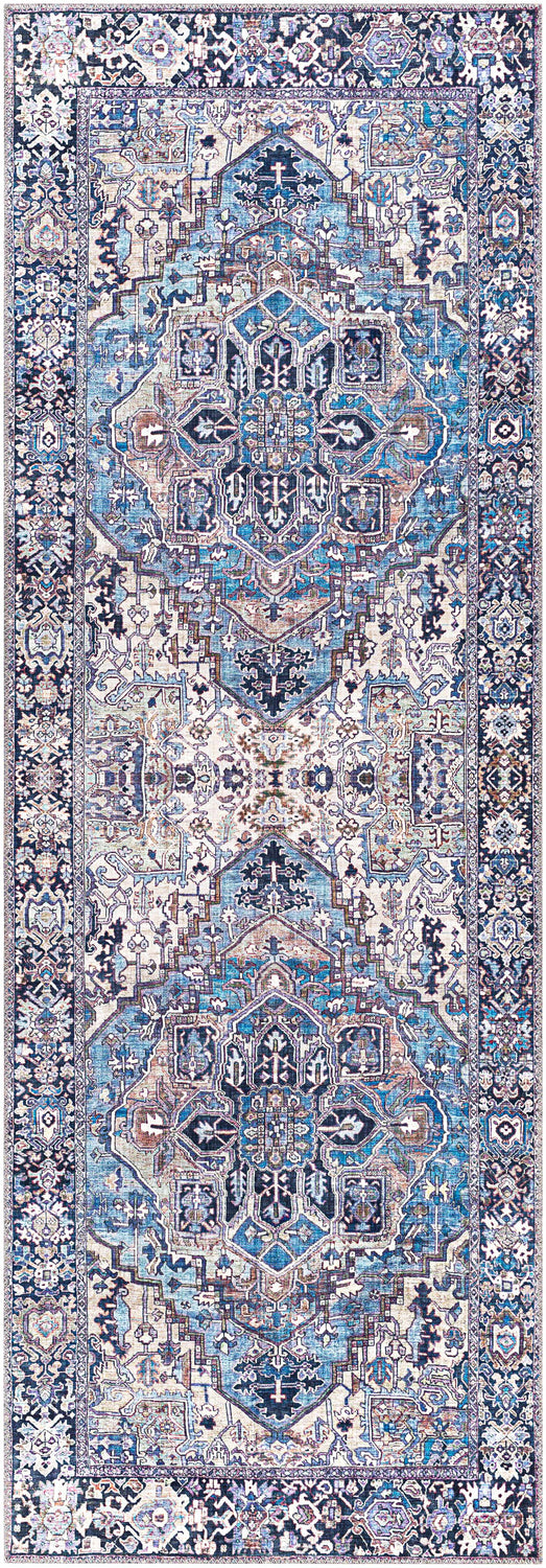 This Neyland Iris Blue Area Rug 2362 area rug brings an updated traditional style to your home with its machine woven construction and no-pile design. The durable polyester material makes it ideal for high traffic areas in the home and is easy to clean - just spot clean with mild detergent. For added comfort, we recommend using a rug pad with this piece. Add classic elegance to any room with this timeless style.