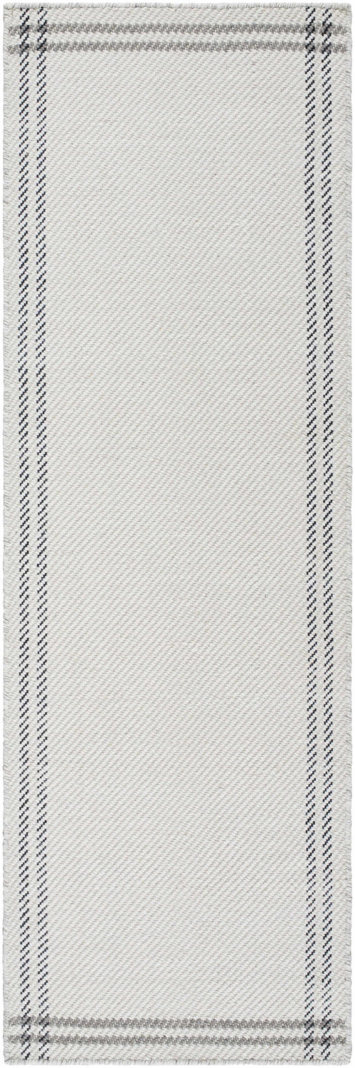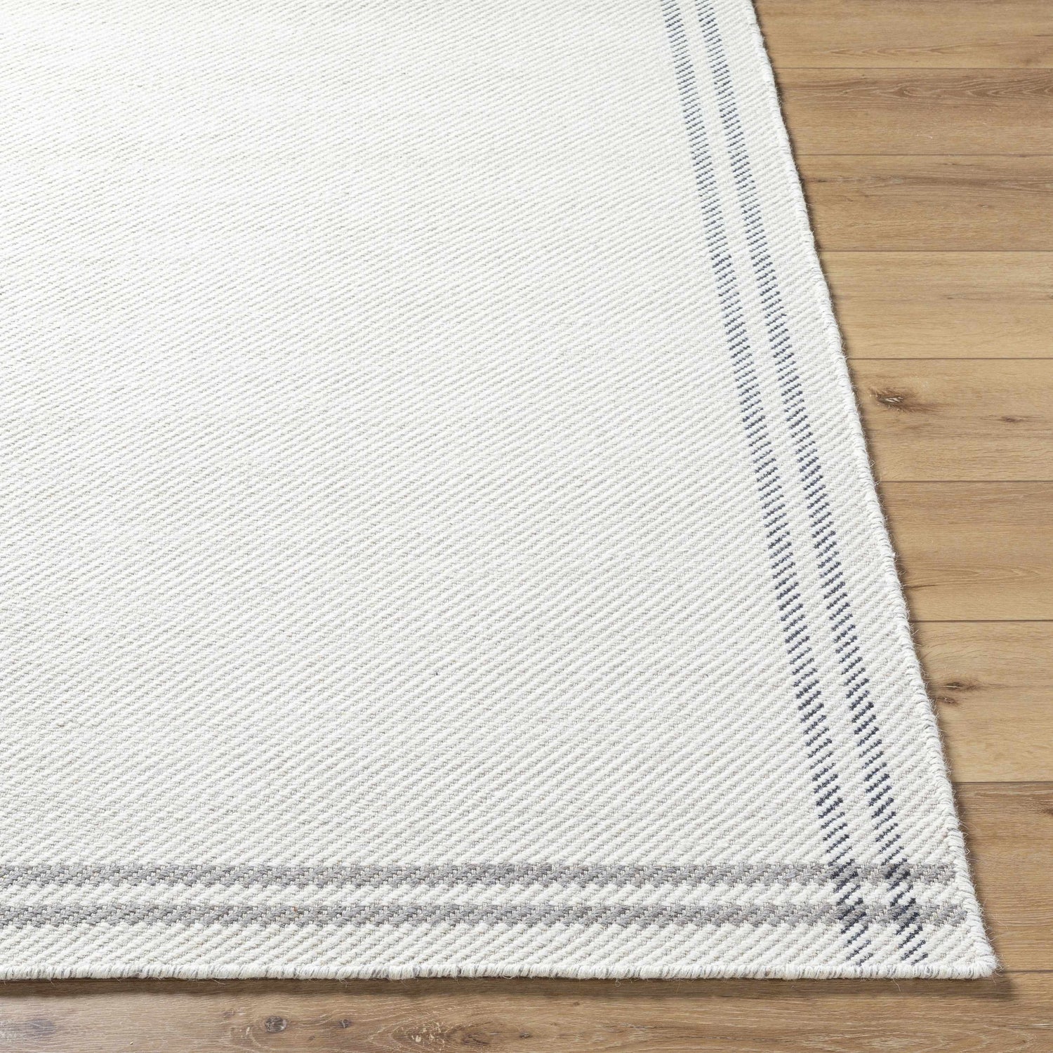 Experience the allure of our Nimue Cream & Charcoal Bordered Wool Rug collection with this stunning hand-made rug. Fashioned from wool and hand-woven with care in India, this rug captivates with its beautiful style that effortlessly enhances any space. The rug is built without a pile, allowing for a sleek profile that fits seamlessly into your home. We recommend the use of a rug pad to prevent slipping and maintain its positioning. When it comes to cleaning, simply spot clean it with a dry cloth to keep it looking fresh and new. Indulge in the comfort and charm of this piece from our Nimue Cream & Charcoal Bordered Wool Rug collection for an instantly upgraded living area.