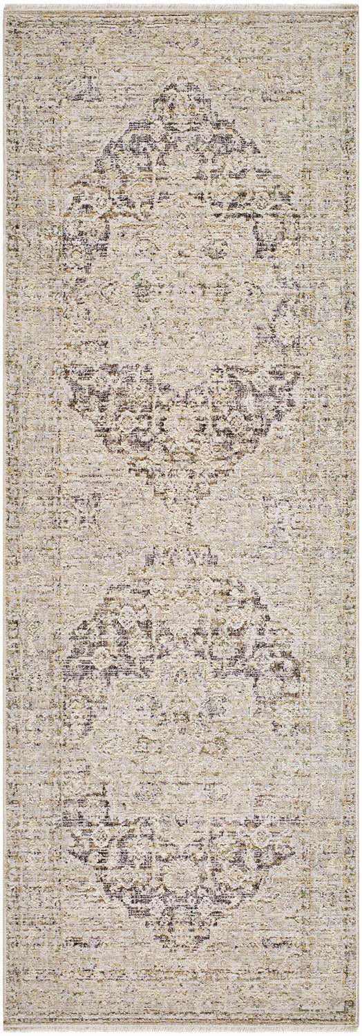 Introducing the Njeri Area Rug, a timeless piece that will add an elegant touch to any space. This machine-woven piece of art is made in Turkey with polyester for a luxurious feel and medium pile for added comfort. It is perfect for high traffic areas and features a fringe for added texture. For easy maintenance, simply spot clean this beautiful rug with mild detergent when needed. To complete the look, use a rug pad underneath (not included). This exquisite area rug is sure to be an eye-catching addition to your home decor!