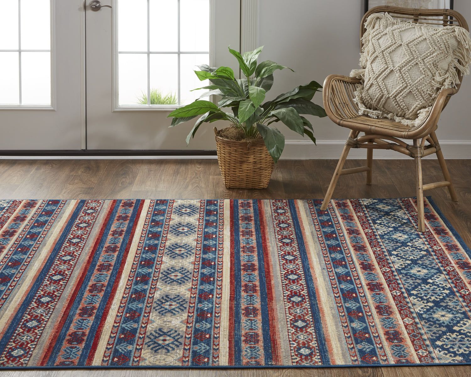 Feizy Nolan Transitional Diamond - Blue/Red/Ivory Area Rug - Clearance