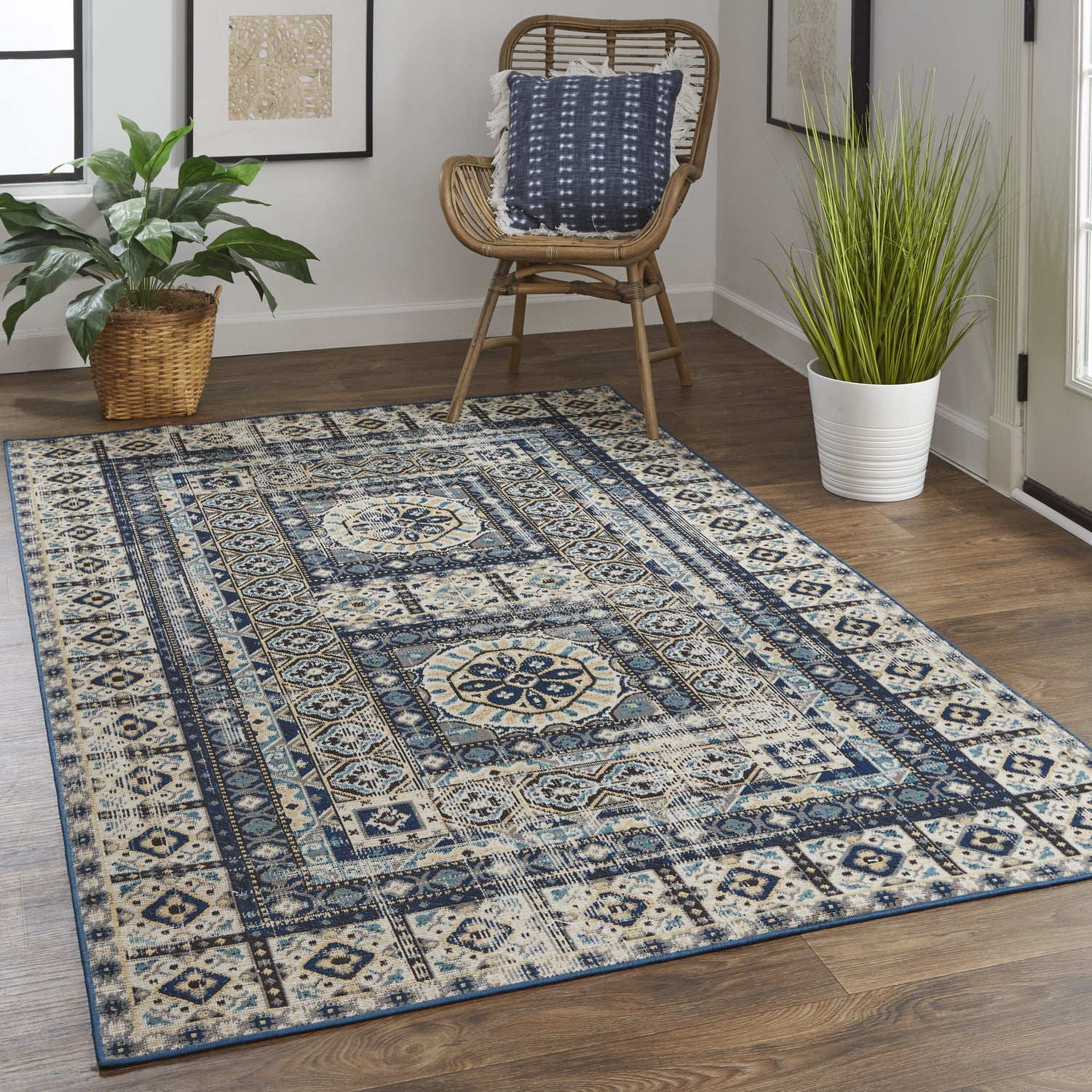 Feizy Nolan Transitional Medallion - Ivory/Tan/Blue Area Rug - Clearance
