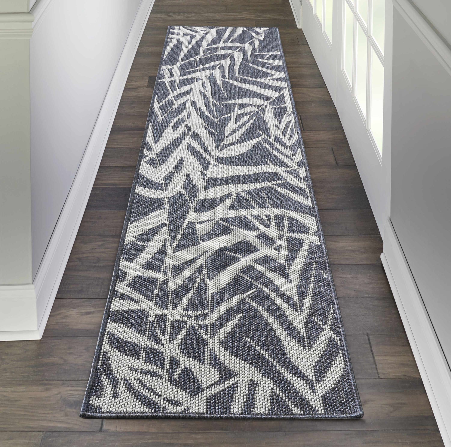Sweeping palm fronds in slate and cream make the Aruba runner a standout on any patio, porch, or deck — durable, water resistant, and effortlessly coastal.