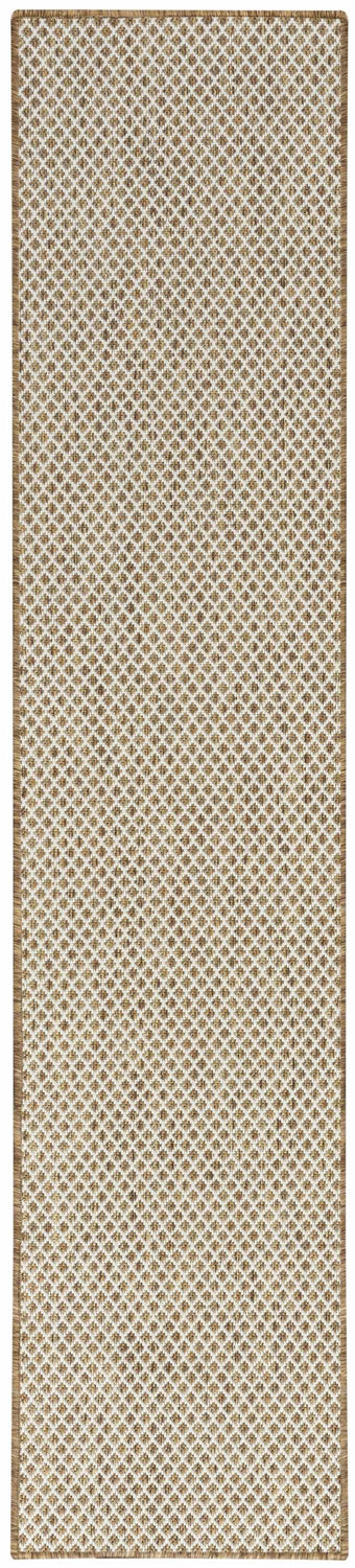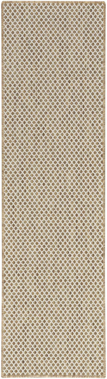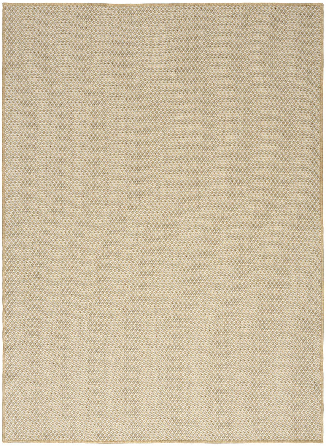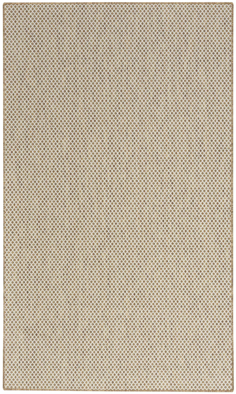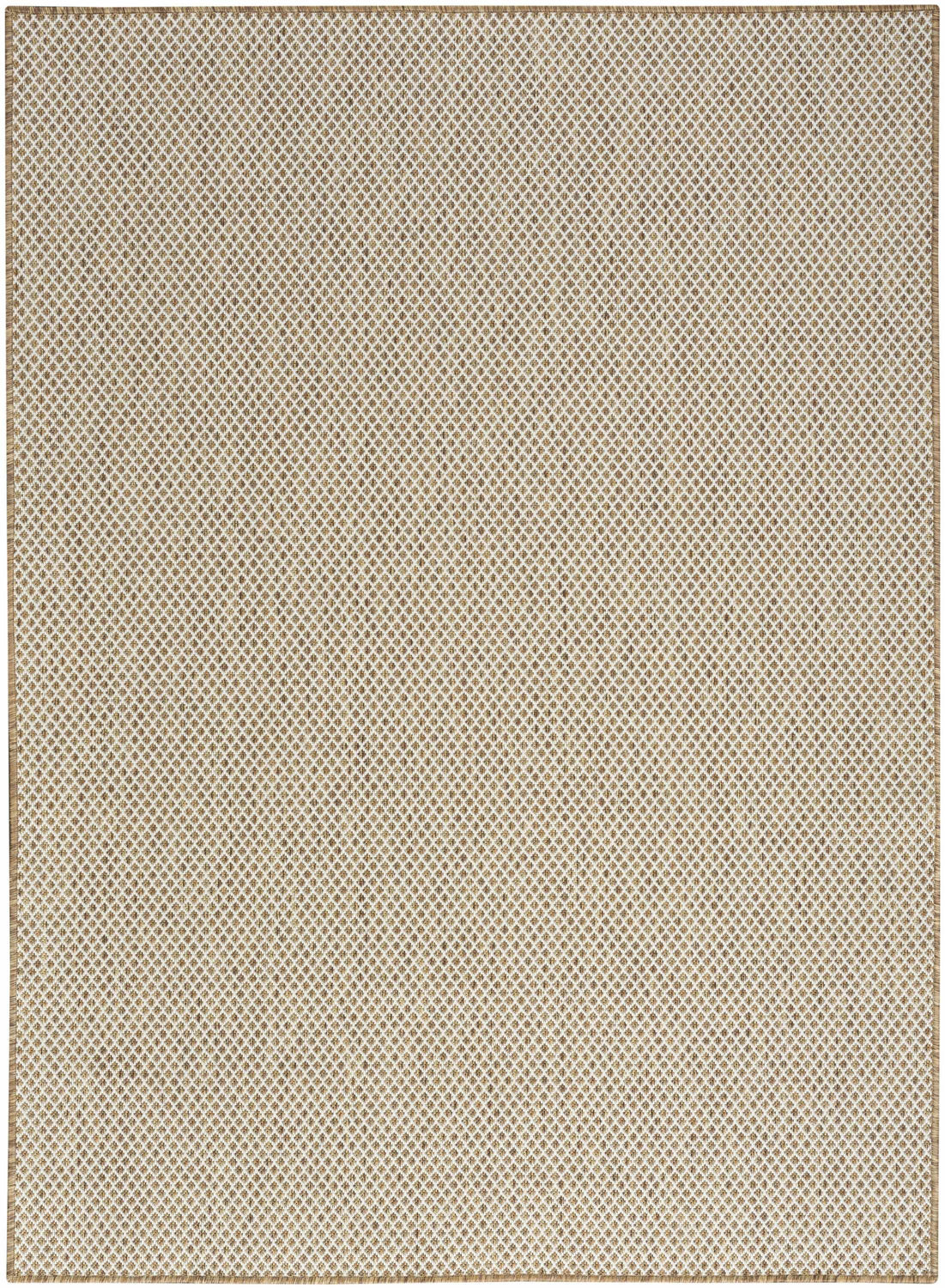 The Nourison Courtyard area rug brings effortless, natural style to any outdoor or indoor space with its soft ivory and tan diamond-lattice pattern. Woven from durable polypropylene with a jute-inspired texture, this rug is built to handle the elements — UV-resistant, water-resistant, and tough enough for high-traffic areas like patios, porches, decks, and sunrooms. The low-profile 0.25-inch pile lies flat and clean underfoot, making it easy to sweep or hose off after outdoor use. Its neutral ivory and warm beige tones work beautifully with natural wood furniture, rattan, wicker, and coastal or farmhouse décor. The subtle all-over geometric diamond weave adds visual interest without overwhelming a space — it's the kind of rug that quietly elevates a room rather than demanding attention. Whether you're furnishing a covered porch, a backyard dining area, or a breezy sunroom, the Courtyard rug delivers a polished, cohesive look that holds up season after season. Pet-friendly and stain-resistant, it's a practical choice for families who want style without the stress.