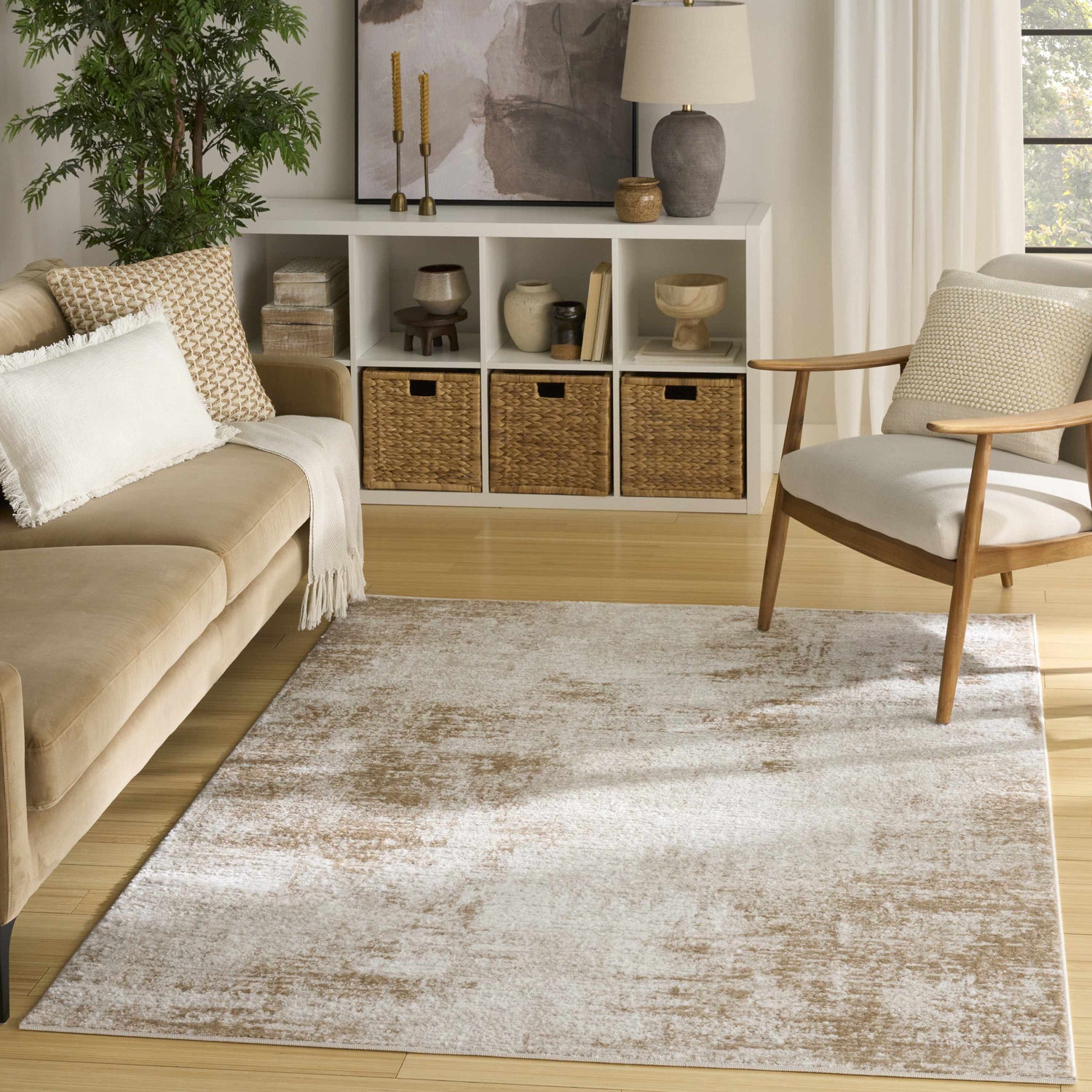 Soft ivory and warm beige blend into a quietly textured abstract design — the Nourison Dekor is the kind of neutral rug that makes every room feel more pulled together.