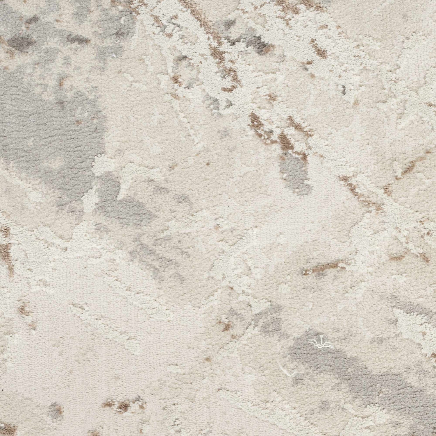 - Soft cream base with abstract distressed brown and gray markings