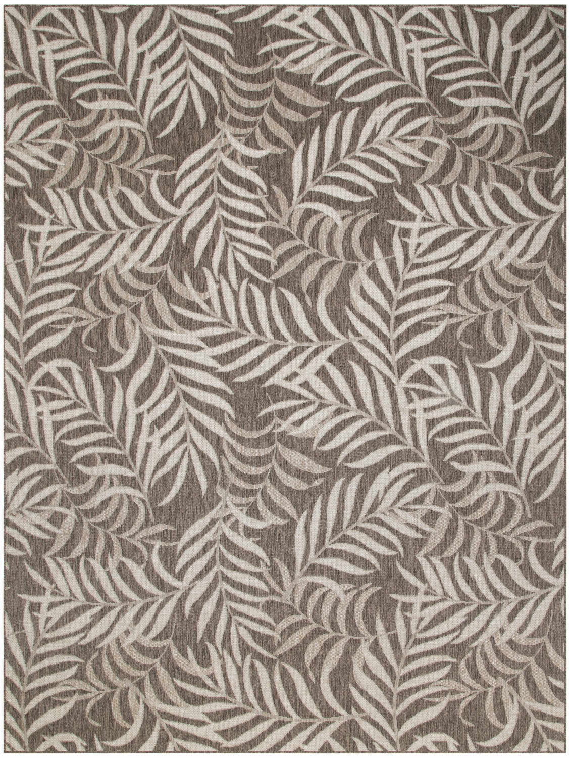 A lush palm leaf pattern in warm mocha and beige tones — this weather-resistant polypropylene rug brings tropical style to any patio, porch, or deck.