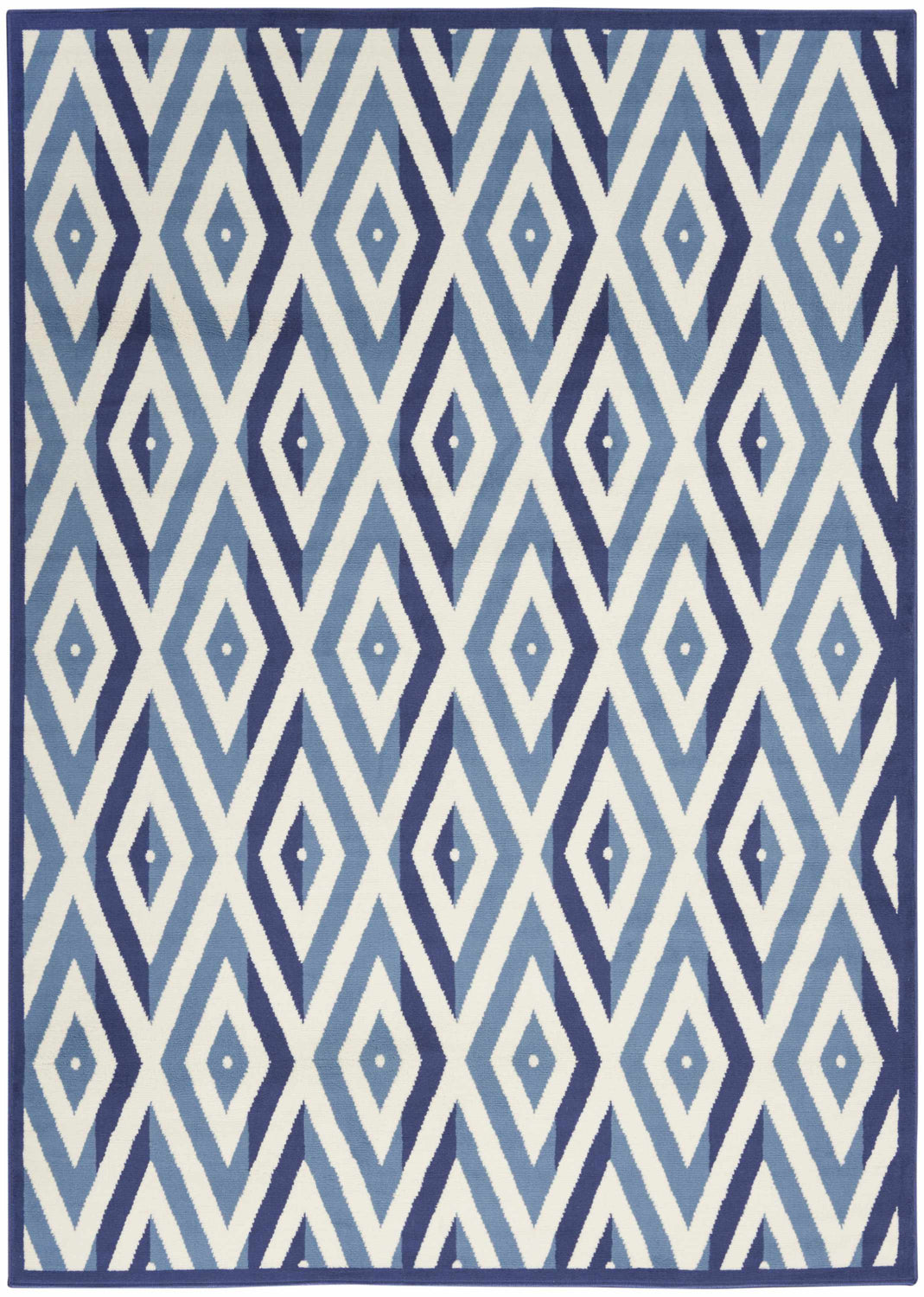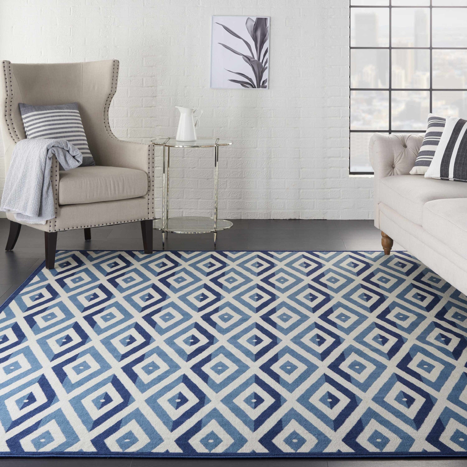 A crisp blue-and-white diamond pattern that turns any floor into a focal point — the Nourison Grafix brings bold mid-century modern geometry to your space.