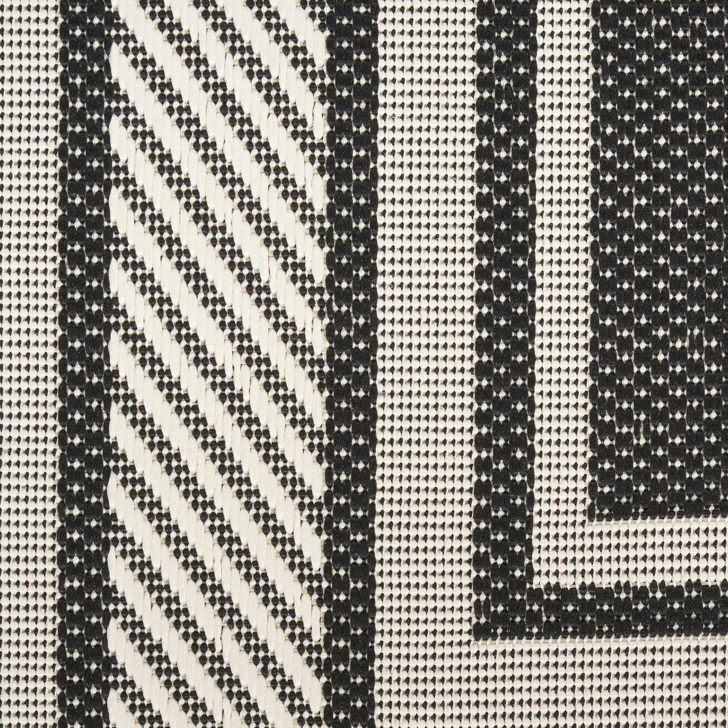 A sharp black runner with a clean layered border in gray and white — built for outdoor durability and modern style on patios, porches, and entryways.