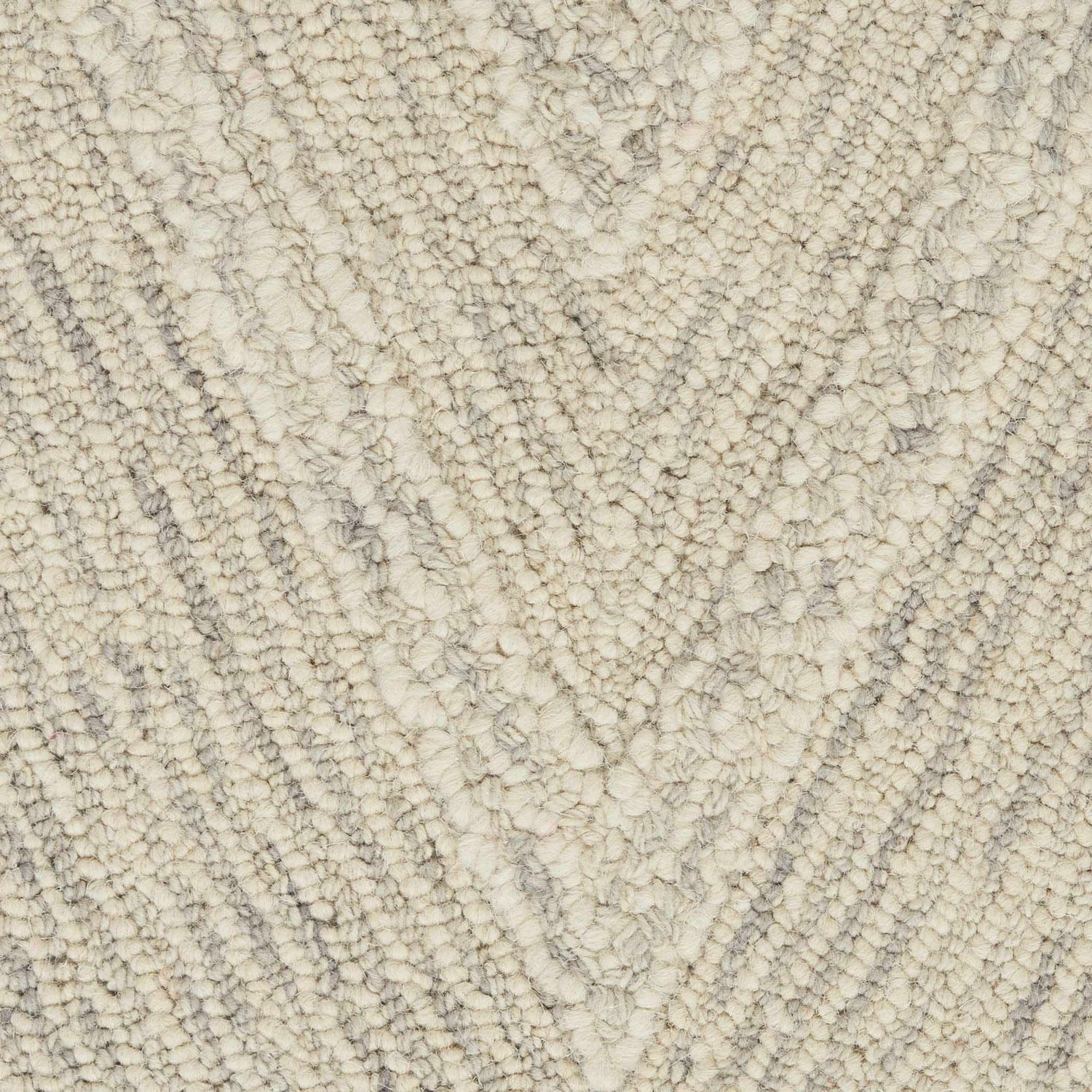 - Classic herringbone pattern in soft ivory and gray tones