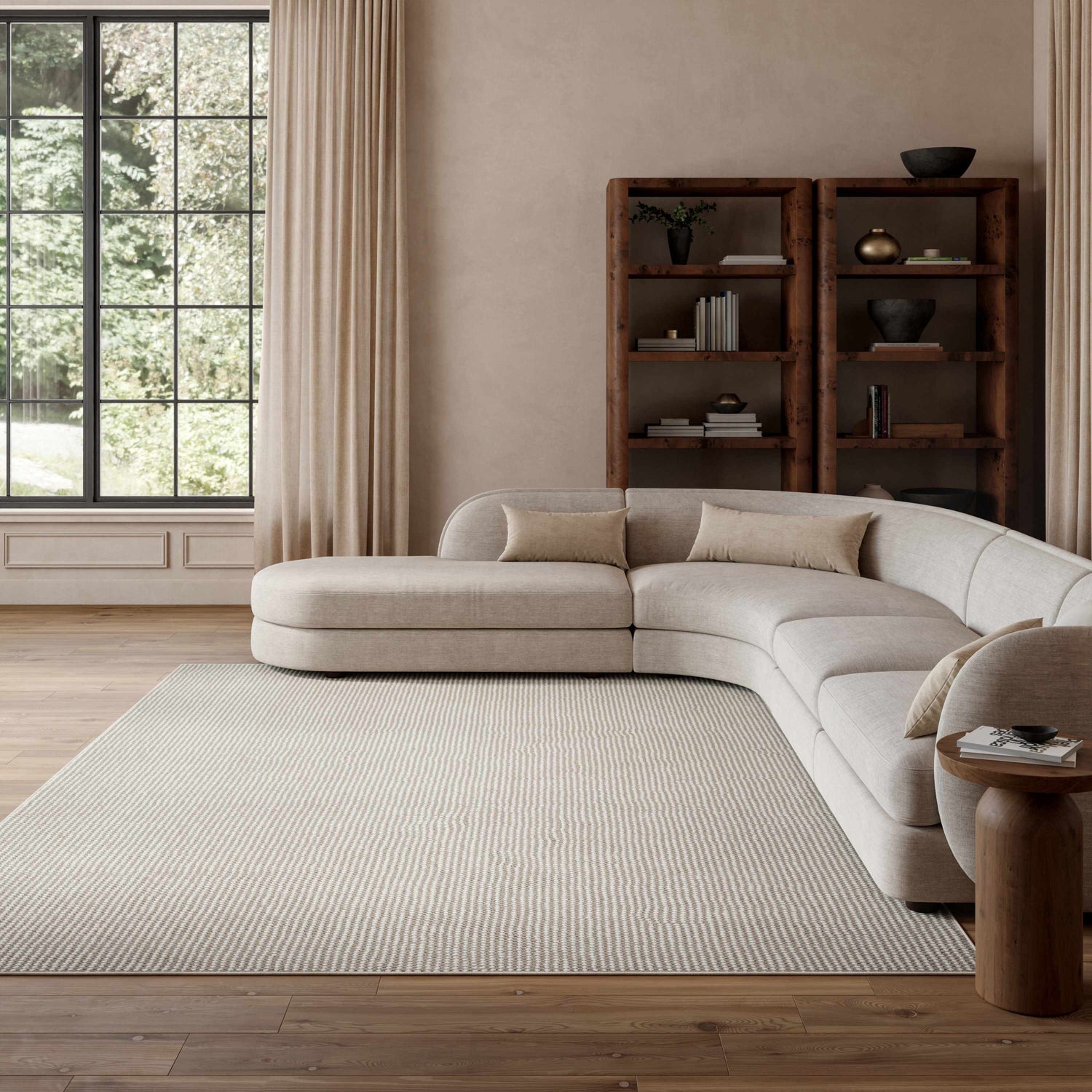 A quietly beautiful woven rug in warm ivory and beige — the kind of neutral that makes every room feel more grounded and put-together.