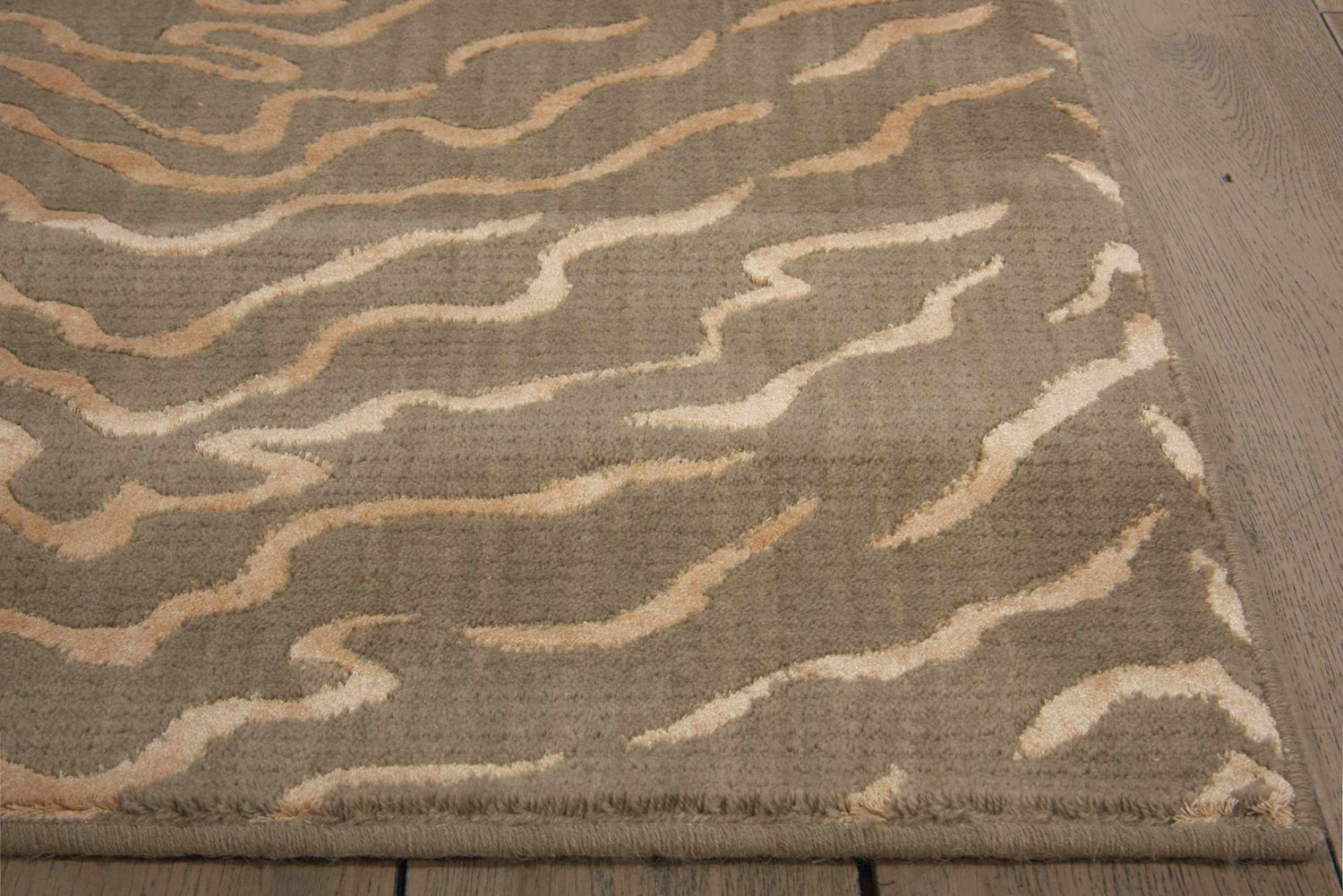 Soft gray meets flowing cream waves in this modern abstract rug — a quietly bold pattern that adds texture and movement to any neutral room.
