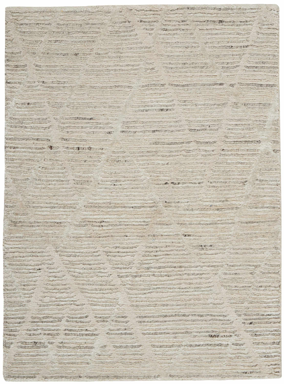 neutral paletteA serene all-neutral palette of creamy ivory and warm beige, where the pattern emerges entirely through texture and tone rather than color contrast — giving the rug a calm, monochromatic sophistication.
