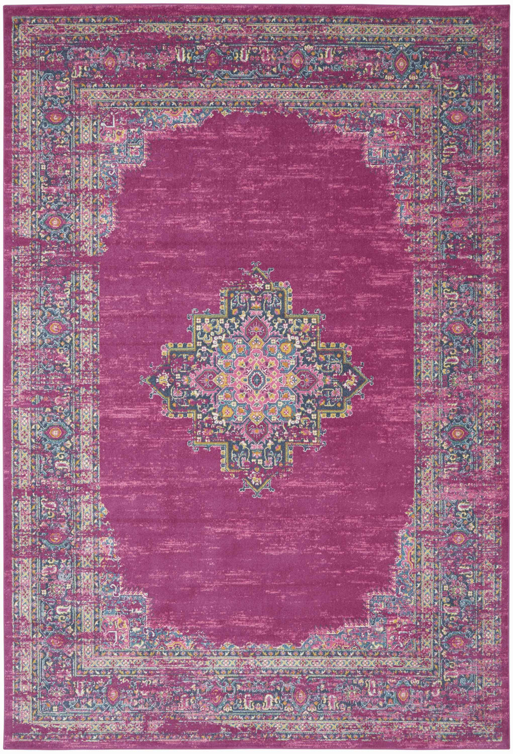 - Vivid fuchsia pink base with a classic Persian medallion center