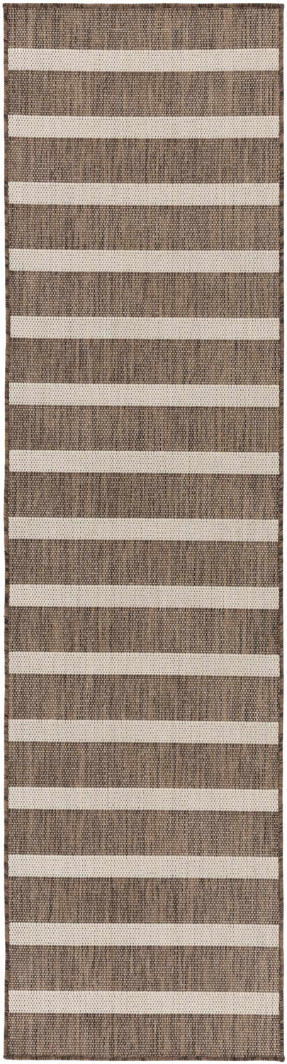 Classic brown and cream stripes in a weather-ready polypropylene weave — the Positano runner is built for patios, porches, and everywhere in between.
