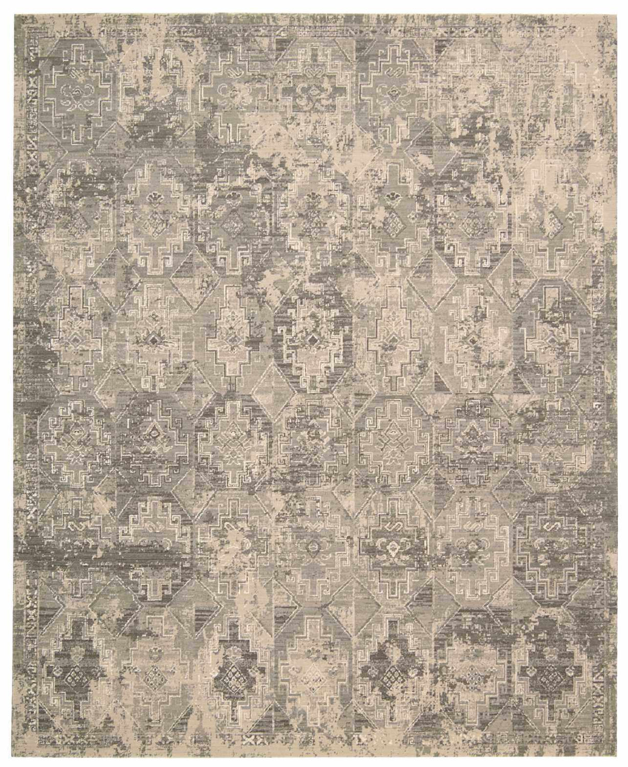 A faded Persian medallion design in warm mushroom, beige, and brown tones — this silk-blend rug brings timeless, antiqued elegance to any space.