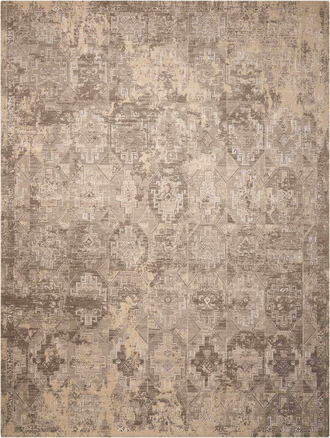 warm paletteA warm, muted palette of mushroom beige and soft brown dominates, with tan and taupe accents woven throughout — the overall effect is like a sun-faded antique, earthy and quietly sophisticated.