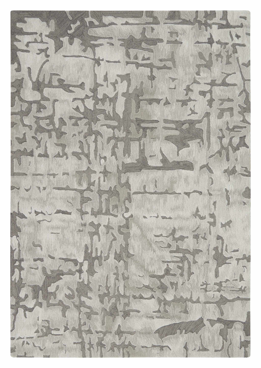 neutral paletteA soft ivory base is layered with brushed gray and taupe markings that shift in tone across the surface, creating a quiet, tone-on-tone effect that feels both textured and serene.