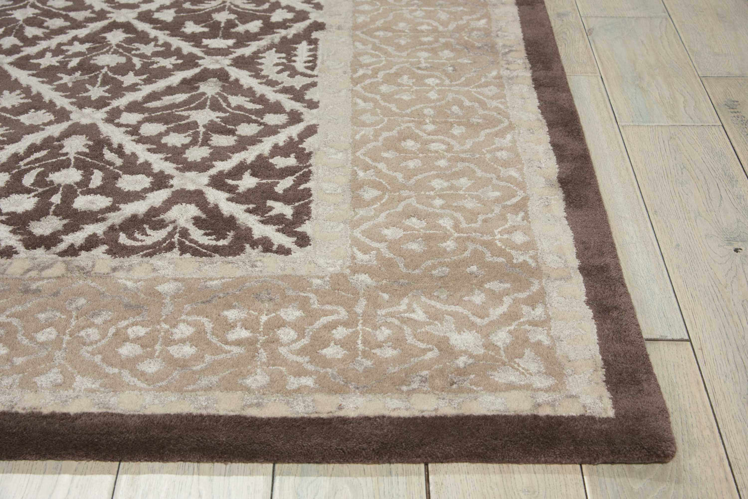 A richly patterned diamond lattice rug in warm brown and beige — the Nourison Symphony brings classic, heritage-inspired elegance to living rooms and dining spaces.