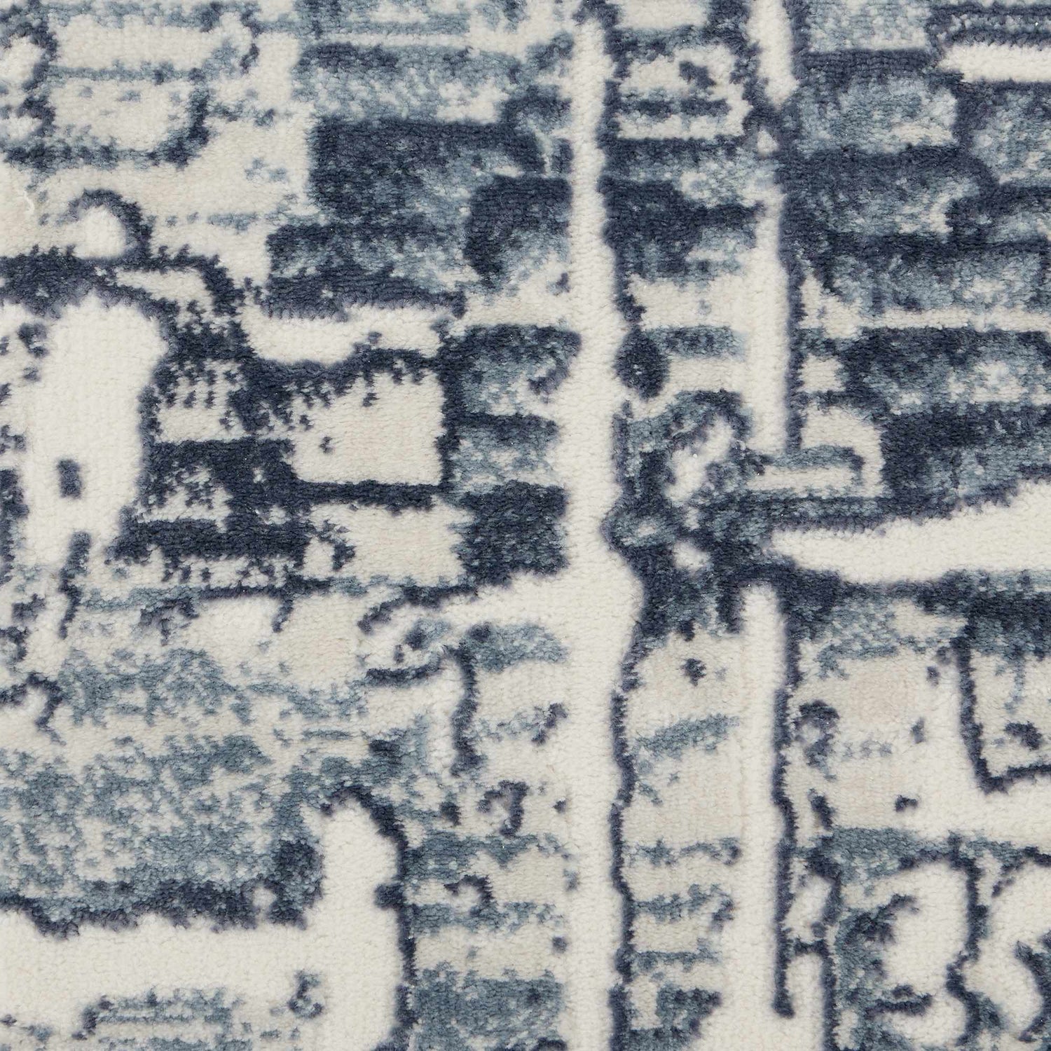 A gallery-worthy abstract design in navy blue and ivory — the Urban Chic rug looks like modern art underfoot, with a medium pile and firm latex backing.