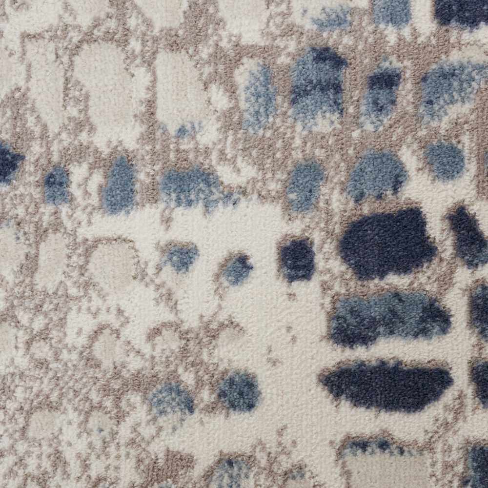 - Allover abstract pattern in ivory, gray, blue, and navy
