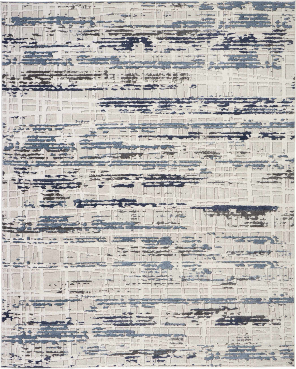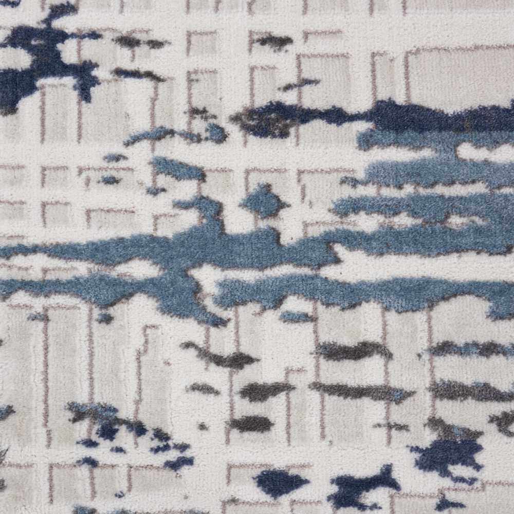 The Nourison Urban Decor area rug brings a sophisticated, gallery-worthy look to any room with its sweeping abstract brushstroke pattern in soft ivory and layered shades of blue and navy. The design has a beautifully distressed, watercolor-like quality — horizontal streaks of slate blue and deep navy drift across a creamy ivory field, creating a sense of movement and depth that feels both artistic and grounded. The medium pile (0.5 inch) offers a comfortable underfoot feel while keeping the profile low enough for high-traffic areas and easy furniture placement. Backed with foam latex for added grip and stability, this rug is built to stay put on hardwood or tile floors. Its cool, neutral-leaning palette makes it incredibly versatile — equally at home in a sleek modern living room, a calm bedroom retreat, or a transitional space that blends classic and contemporary elements. The ivory base keeps the room feeling bright and open while the blue tones add just enough visual interest to anchor the space without overwhelming it.