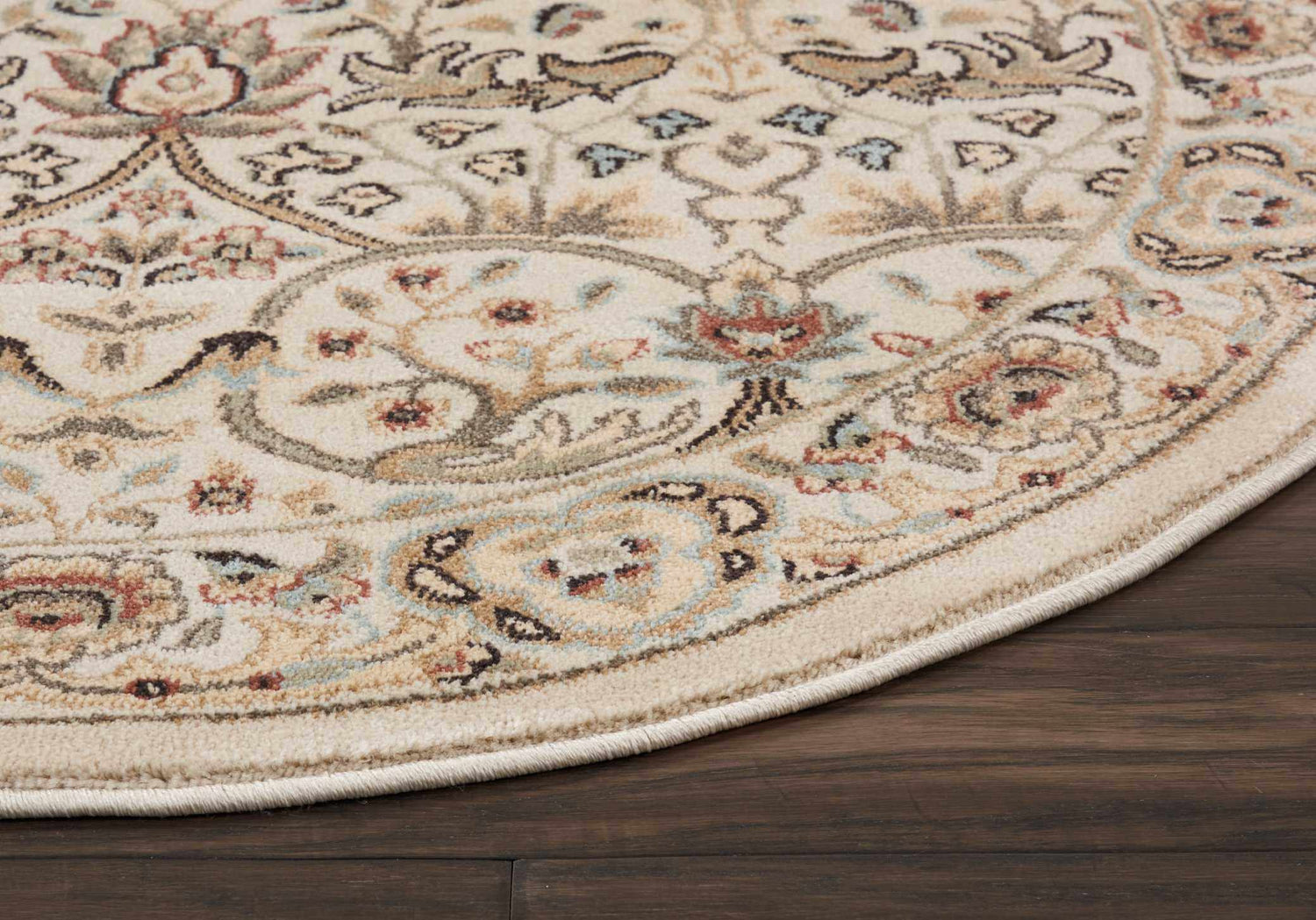 A beautifully detailed Persian-inspired floral design in soft ivory and cream — the Walden round rug brings timeless, heirloom elegance to any room.