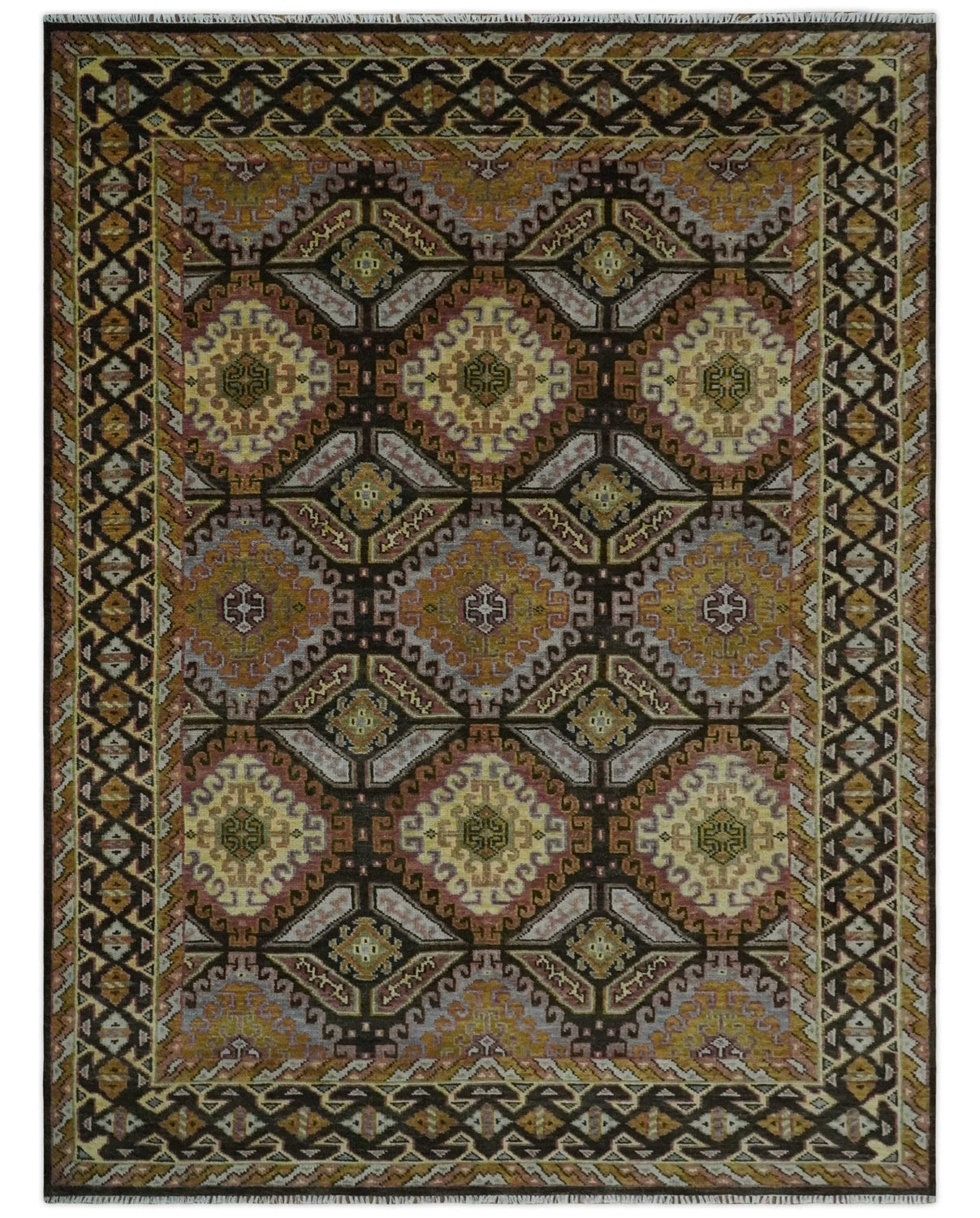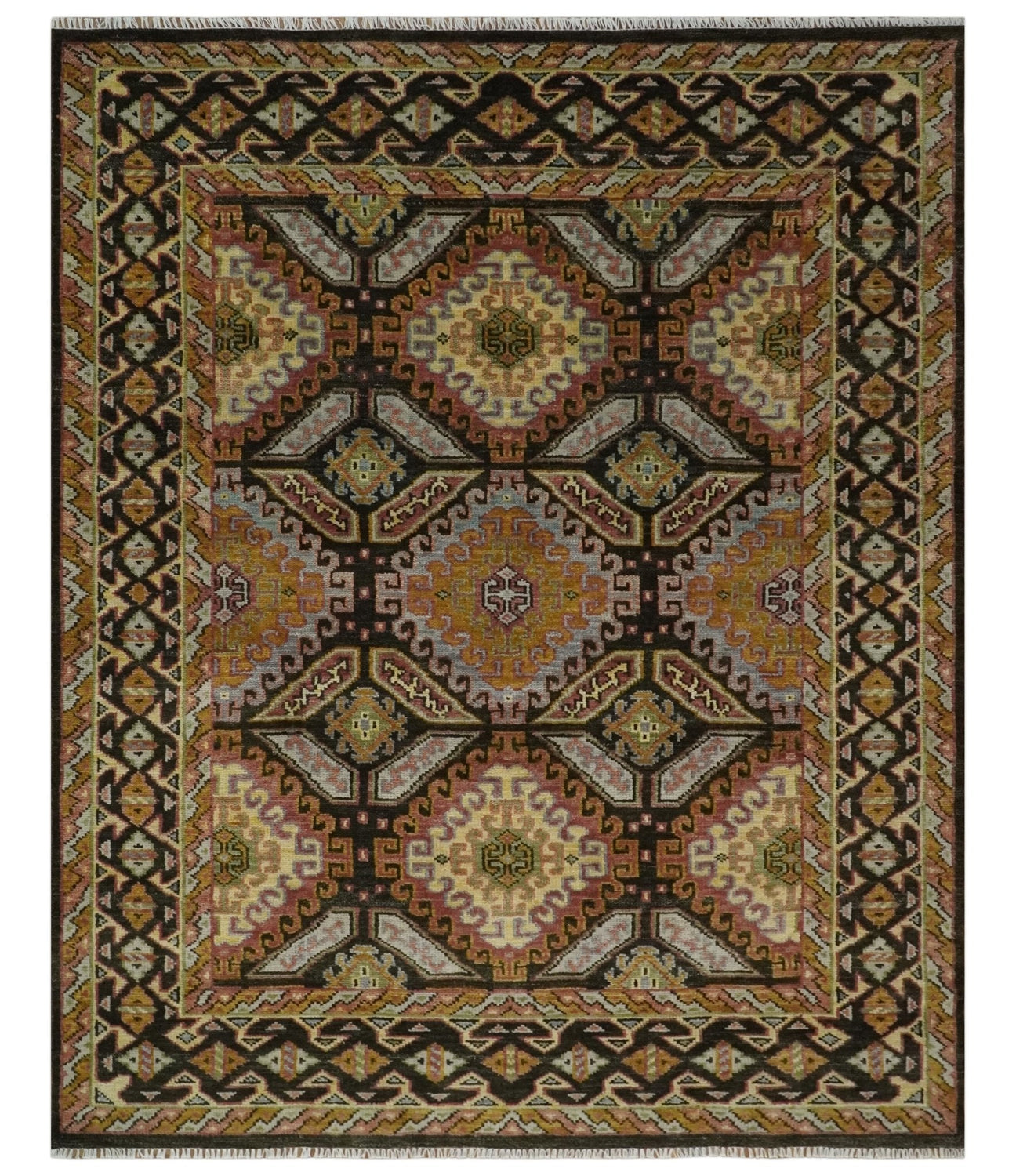 Olive, Gold, Black and Brown Oriental Traditional Hand Knotted Multi Size Wool Area Rug, Living Room and Bedroom Rug