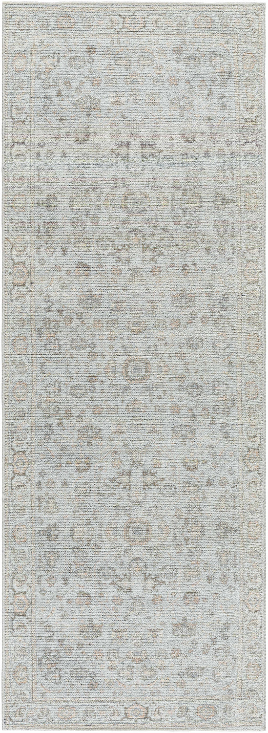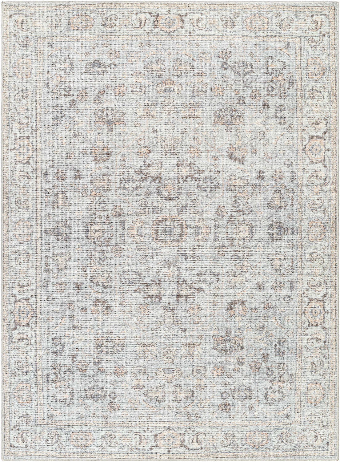 Introducing the Livabliss x Our PNW Home Olympic Damask Light Blue Rug Collection area rug, a unique collaboration between PNW Home and Livabliss. This updated traditional design boasts an intricate, faded filigree pattern that effortlessly merges neutral grays and browns with striking accents of darker charcoal and lighter sand tones. Manufactured in Turkey using machine-woven polyester, this rug showcases an imitation hand-knot texture that adds a distinct depth to its appearance. The medium pile height makes it suitable for high-traffic areas, providing comfort without compromising durability. We recommend using this piece with a rug pad for optimal performance. Please note that professional cleaning is recommended for care and maintenance of this elegant masterpiece.