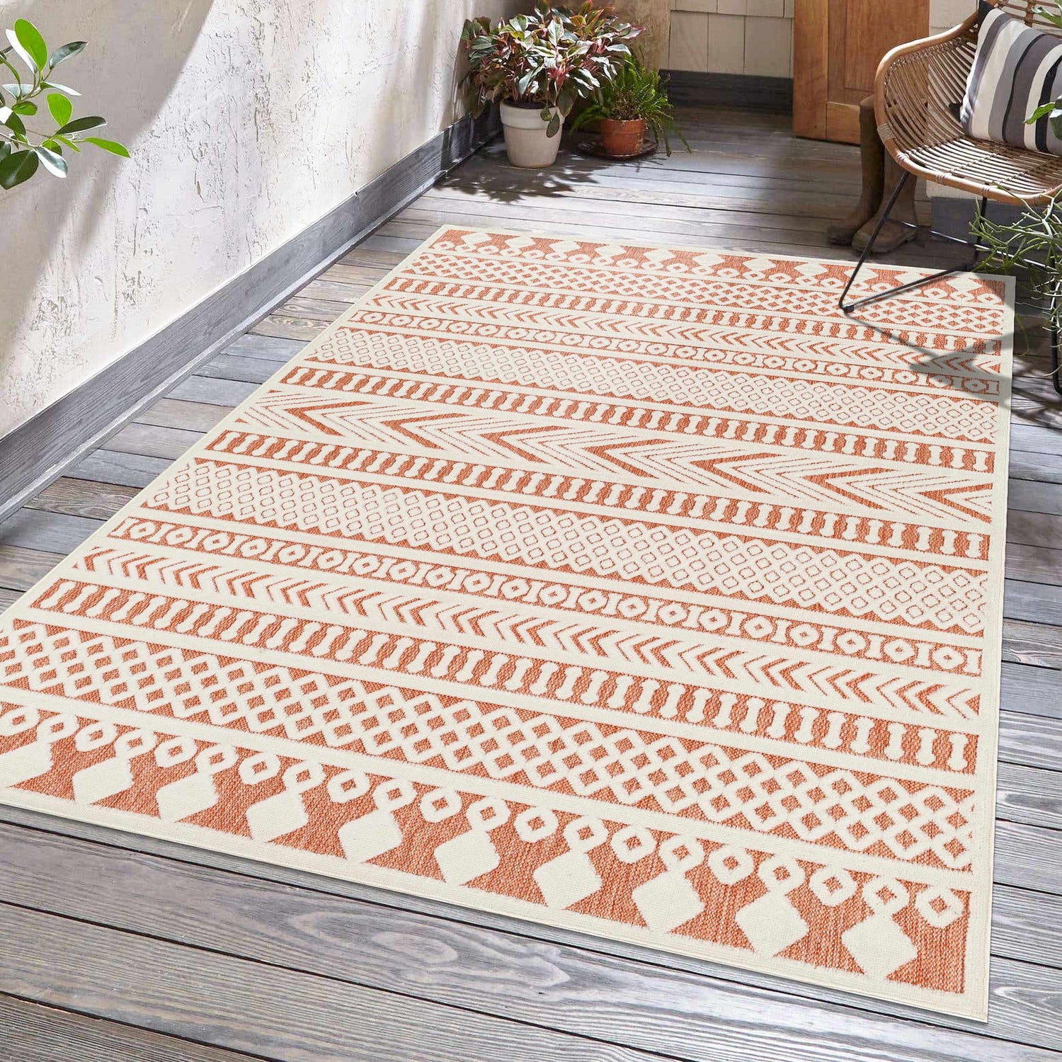 The Jove Orange Outdoor Area Rug is a stylish and durable addition to your home. With its Scandinavian Modern style, it's sure to bring a contemporary touch to any space. This machine-woven polypropylene rug is made in Turkey and is perfect for high-traffic areas due to its medium pile construction. It's also outdoor safe so you can enjoy its beauty outside as well! To ensure the best care for this rug, we recommend using a rug pad underneath it and cleaning with a hose. Give your home the modern upgrade it deserves with the Jove Orange Outdoor Area Rug!
