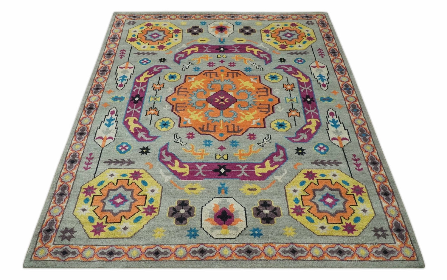 Orange, Silver and Mustard Traditional Mamluk Design Medallion Multi Size wool Area Rug