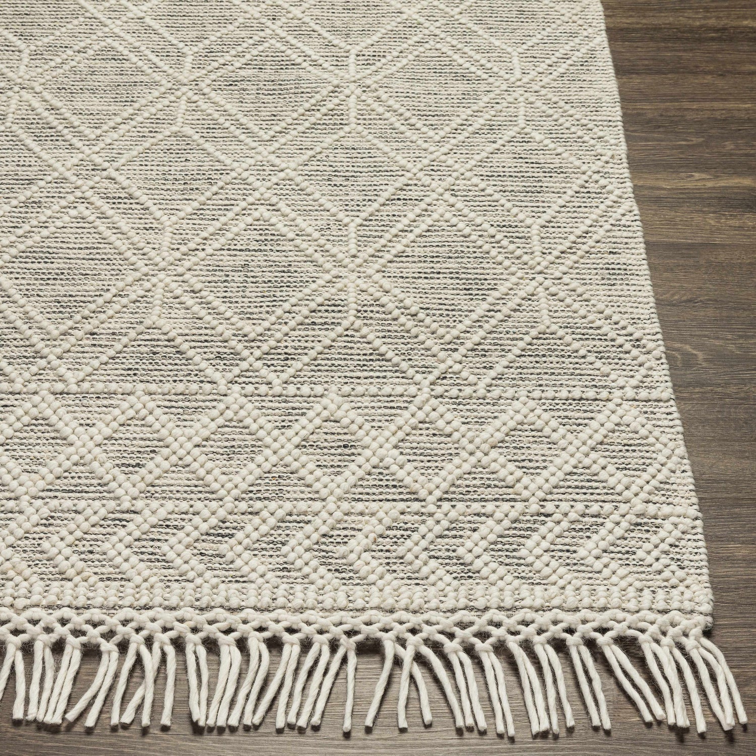 Introduce your home to a timeless classic with this Ossun Wool Area Rug. This beautiful, global-style piece is hand woven with a blend of polyester and wool for an elegant, yet durable finish. Featuring no pile construction and a fringe detail, this design will bring modern sophistication to any room. Made in India, it's recommended that you use this rug with a rug pad to ensure stability and comfort. For best results, professional cleaning is recommended.