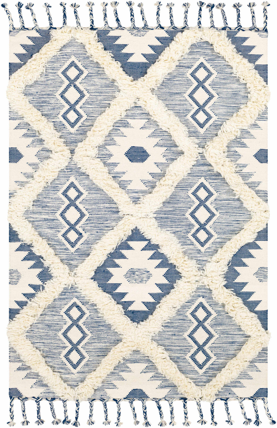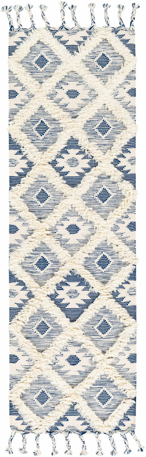 Immerse yourself in the exotic ambiance of Moroccan style with our Painesdale Blue/White Wool Carpet collection hand made rug. Woven meticulously by artisans in India, this plush pile rug is a soft and comforting addition to any space. Made entirely from wool, it boasts a unique global design complete with an elegant fringe that adds an extra touch of chic. Designed for lasting enjoyment, this rug pairs perfectly with a rug pad for optimal grip and cushioning. When it comes to upkeep, simply spot clean with water to keep it looking as stunning as the day you brought it home.
