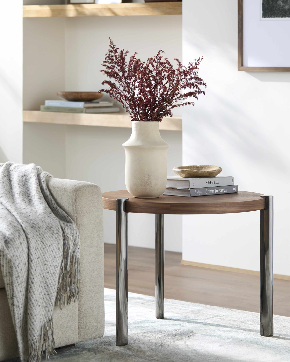 Palasbari Round Walnut Metal Coffee Table