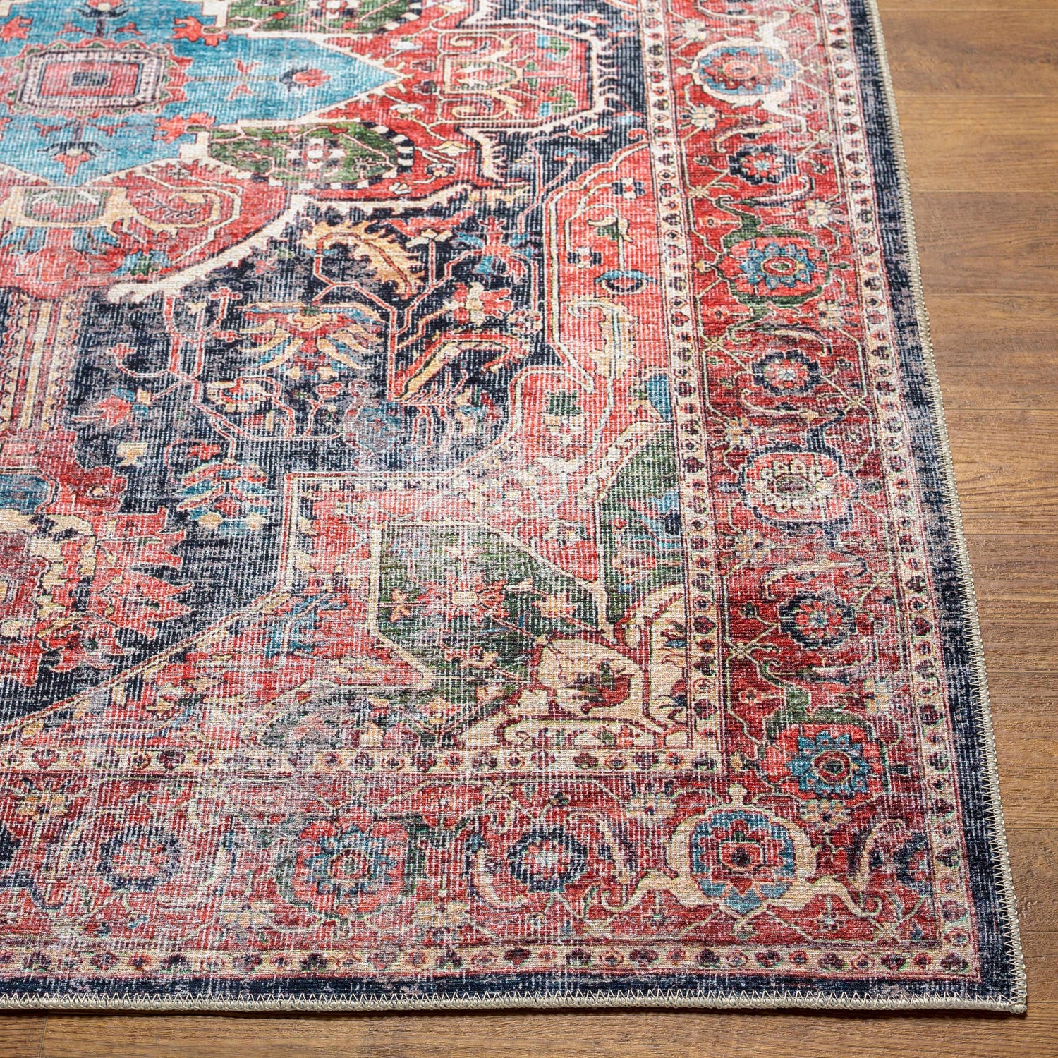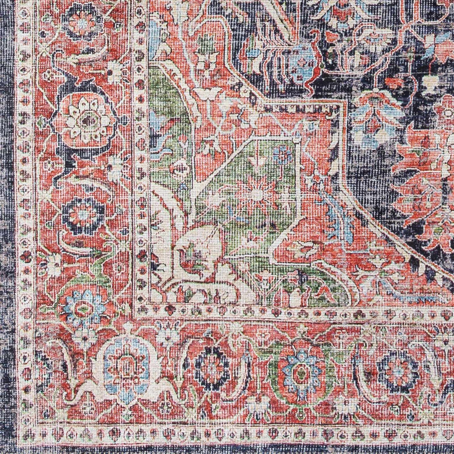 This Pasil Washable Area Rug will bring a classic, traditional style to any room in your home. The machine woven construction is durable and perfect for high traffic areas. It is made of Chenille-Polyester and has no pile, making it easy to clean and maintain. It's made in Turkey with excellent craftsmanship. For extra protection, it is recommended that you use a rug pad underneath this area rug. To clean, do not bleach or dry clean - spot treat as needed.