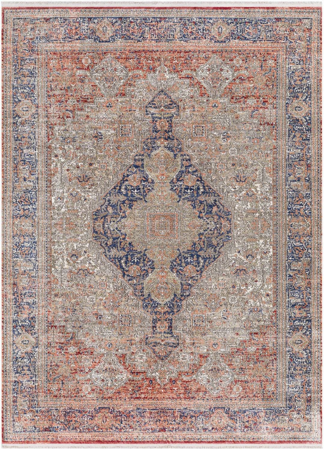 Introducing the Patea Area Rug! This updated traditional style rug is an elegant addition to any room. Its machine woven construction and medium pile make it perfect for high traffic areas, so you can enjoy its beautiful pattern for years to come. Crafted from polyester, this rug is durable and soft underfoot. The fringe adds a unique touch to complete the look. To keep this rug looking pristine, simply spot clean with mild detergent as needed. For added protection, we recommend using a rug pad (sold separately).