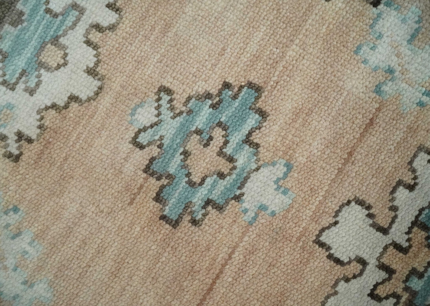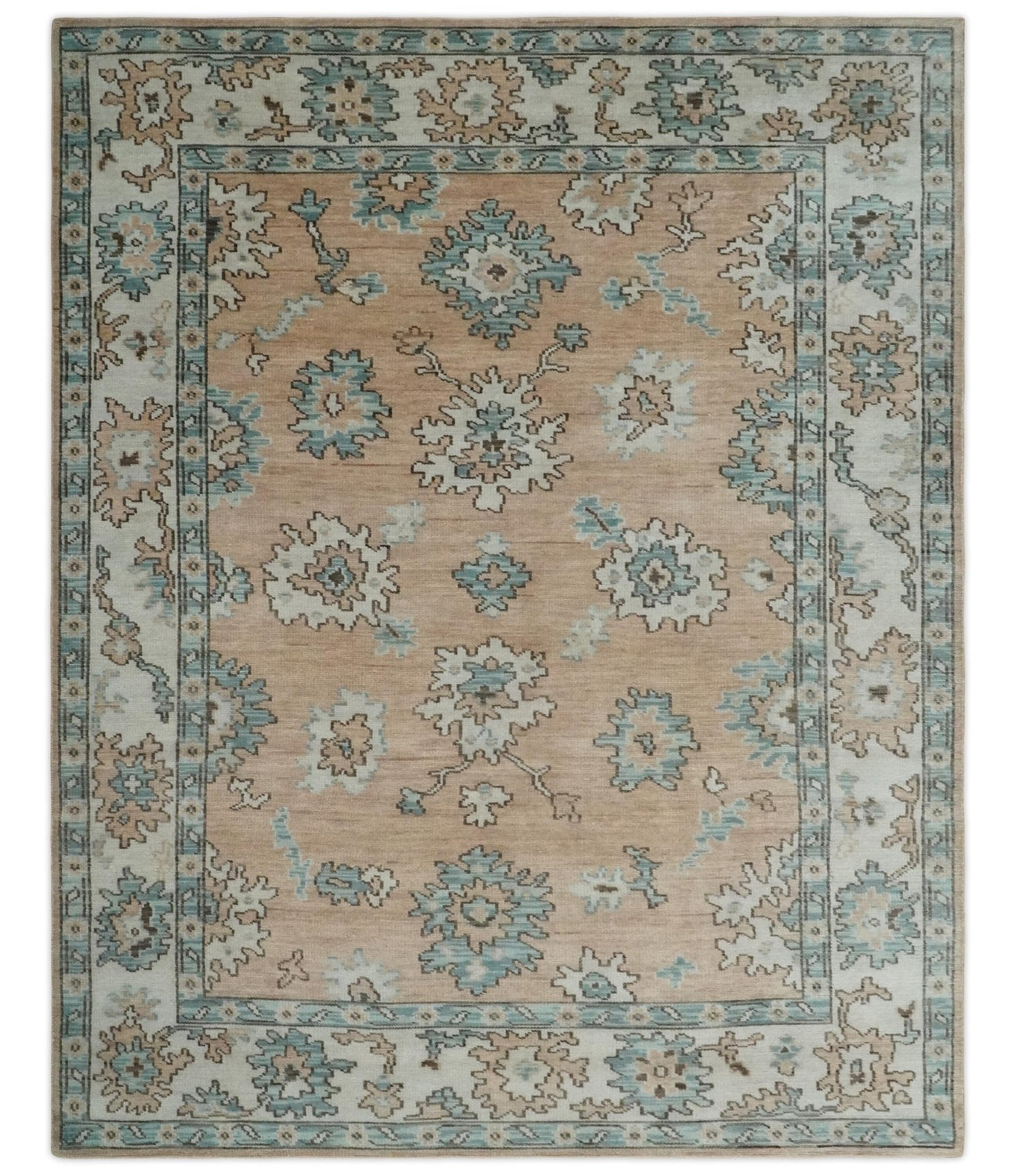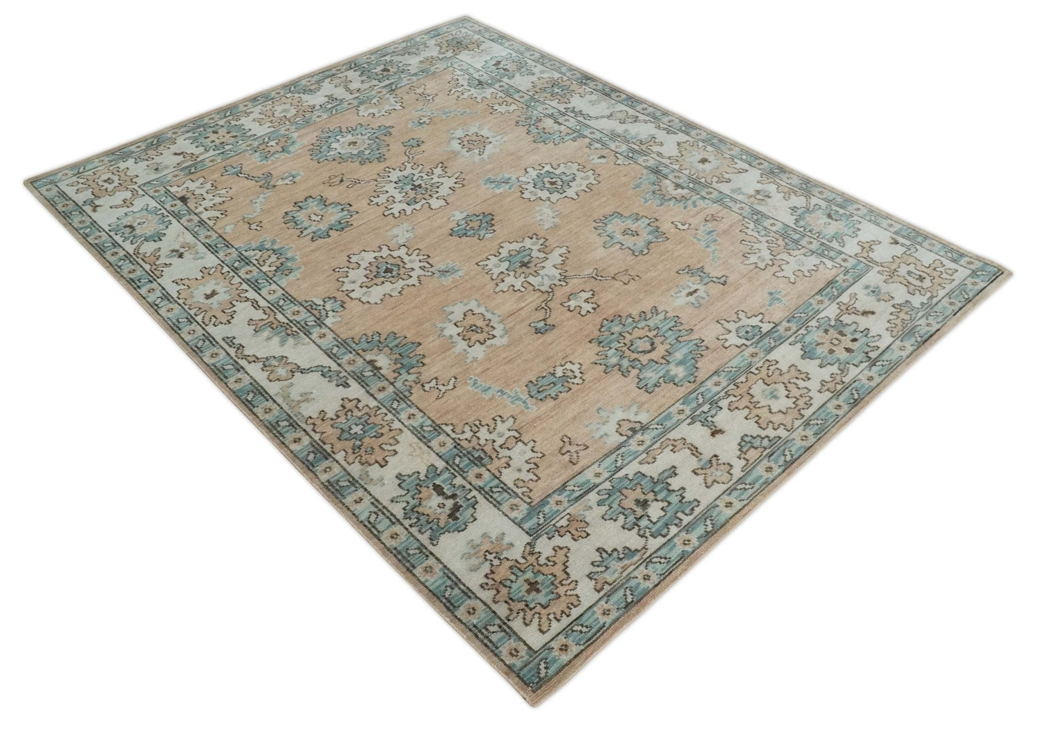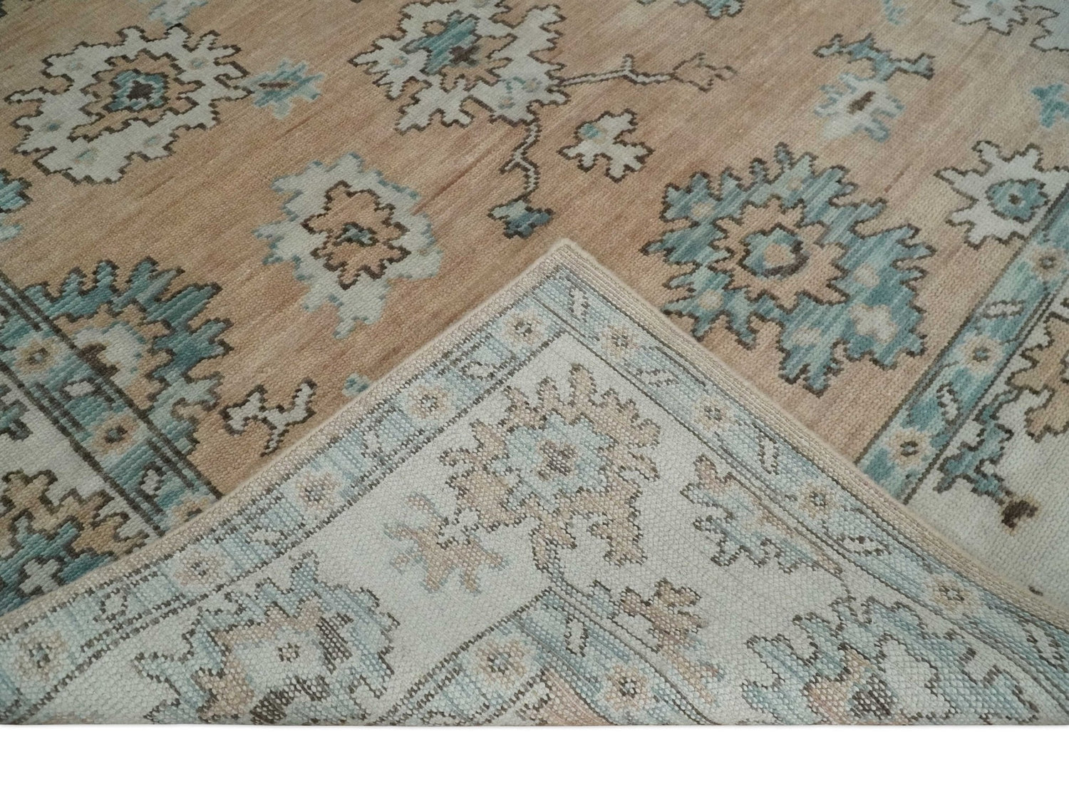 Peach, Ivory and Teal Hand knotted Traditional Oushak Multi Size wool Area Rug