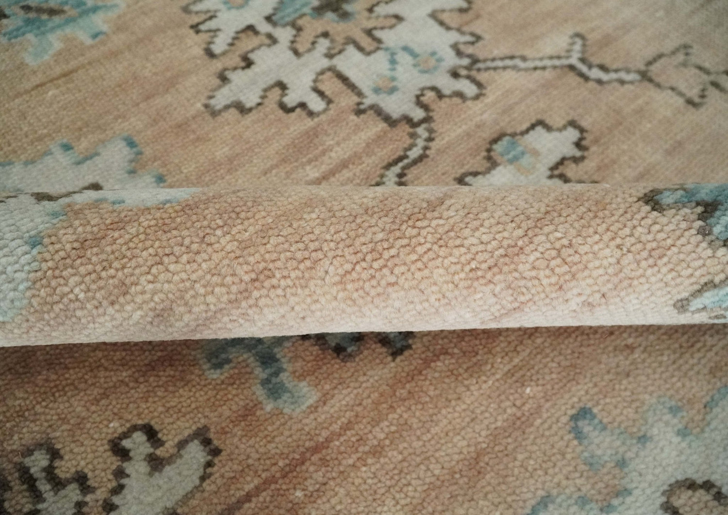 This Peach, Ivory, and Teal hand-knotted Traditional Oushak wool Rug offers an elegant look for any space. With a traditional Oushak multi-size design, this rug is hand-knotted using soft wool yarn for a plush feel. Add a comfortable and stylish look to any room with this sophisticated rug.