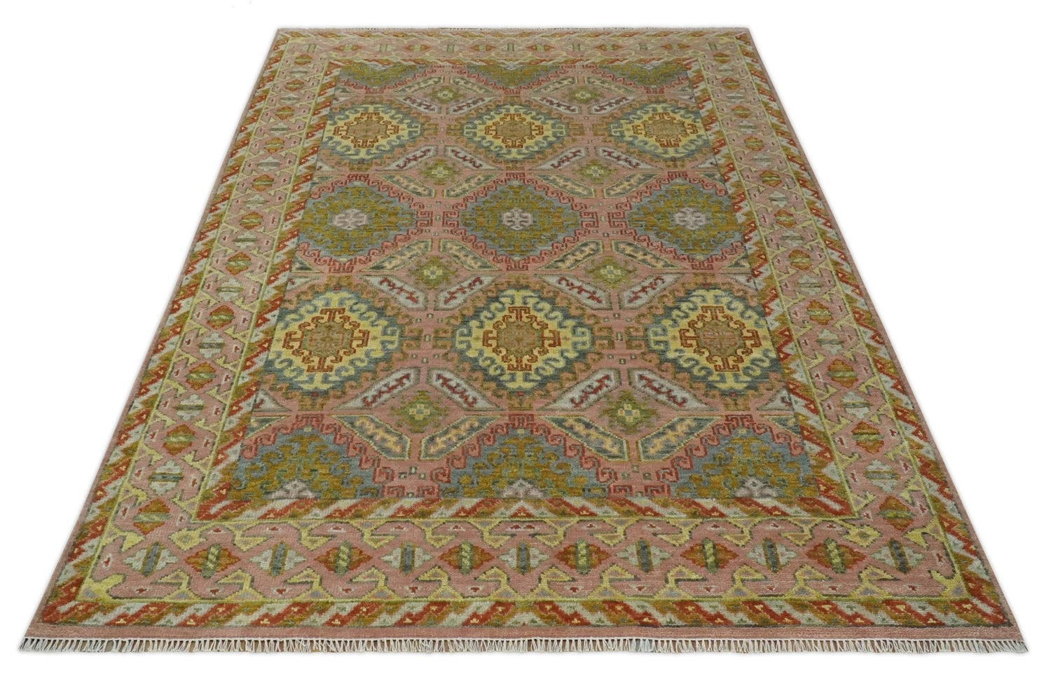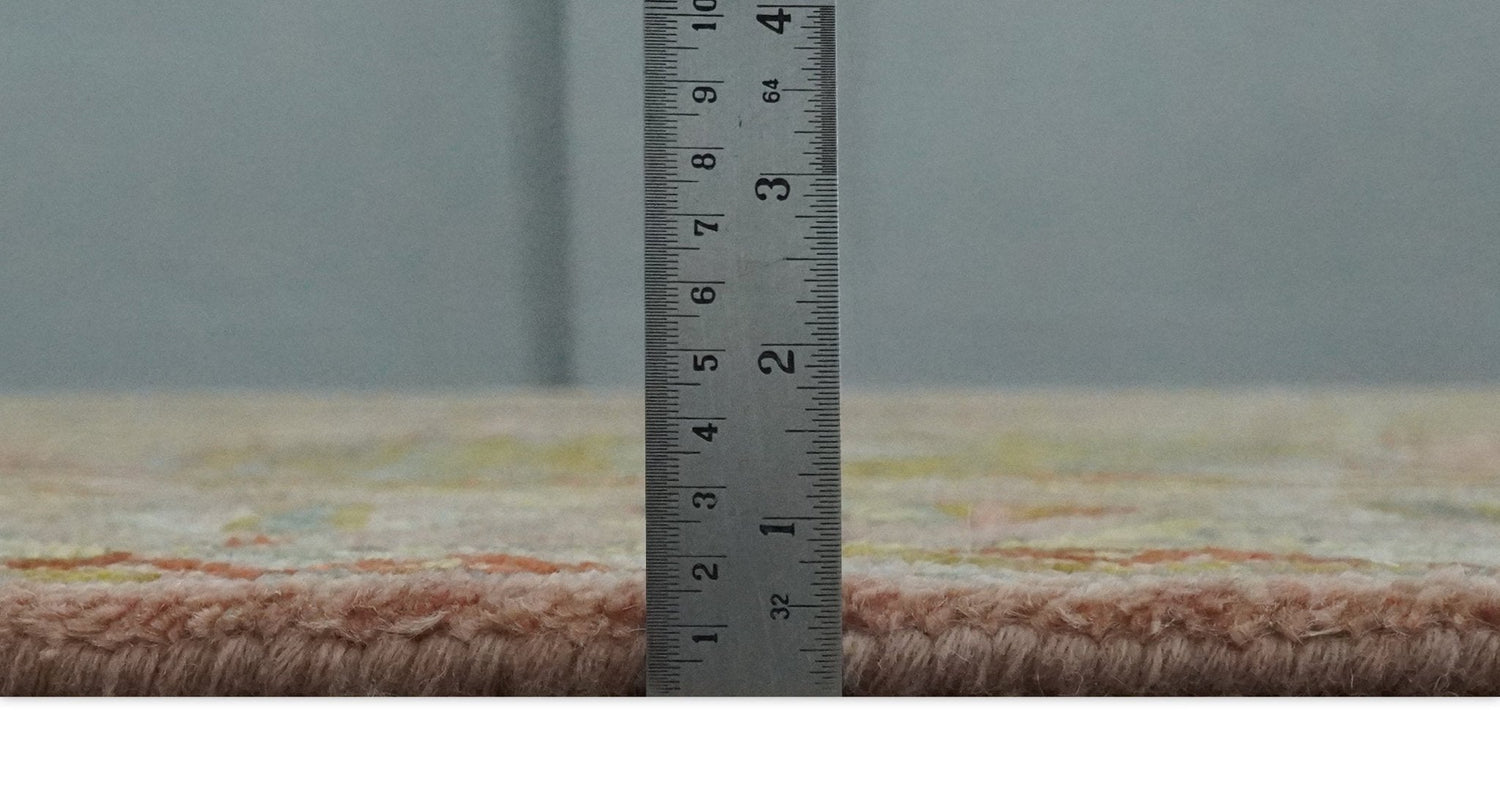 Peach, Mustard, Brown and Gray Oriental Hand Knotted Multi Size Wool Area Rug, Living Room and Bedroom Rug