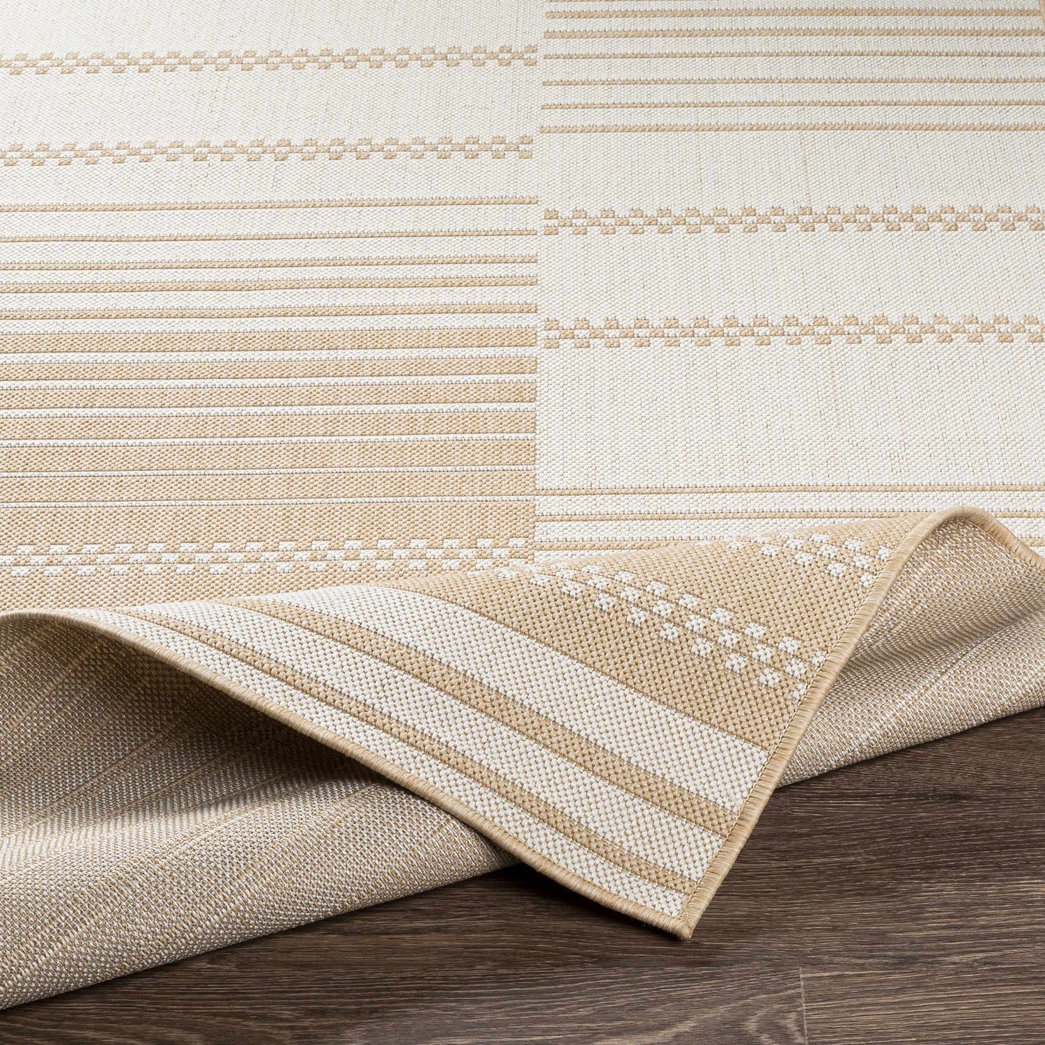 The Portscatho Carpet area rug offers a beautiful style for any space. Its unique construction of Polypropylene and Polyester ensures durability and is perfect for high traffic areas. The no pile design makes this rug ideal for outdoor use, adding a touch of beauty to your patio or deck. For added comfort and stability, we recommend using the Portscatho Carpet with a rug pad. Easy to care for, simply spot clean with mild detergent when needed. Make a statement in any room with the Portscatho Carpet area rug!