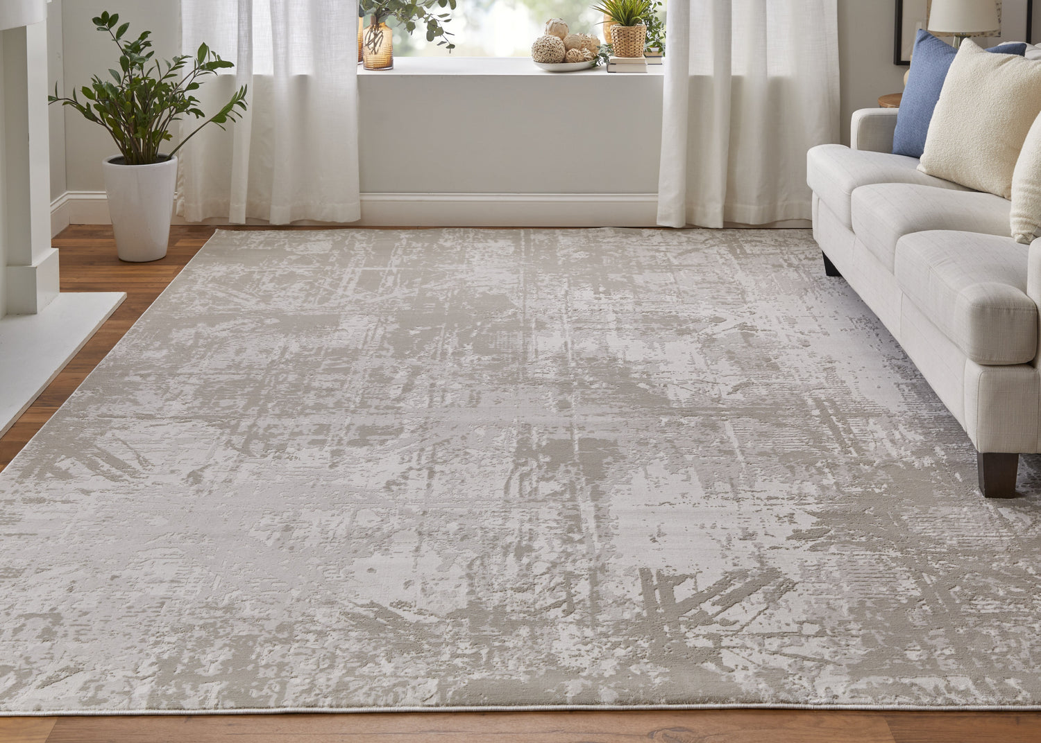 Feizy Prasad Modern Abstract - Ivory/Taupe/Silver Area Rug